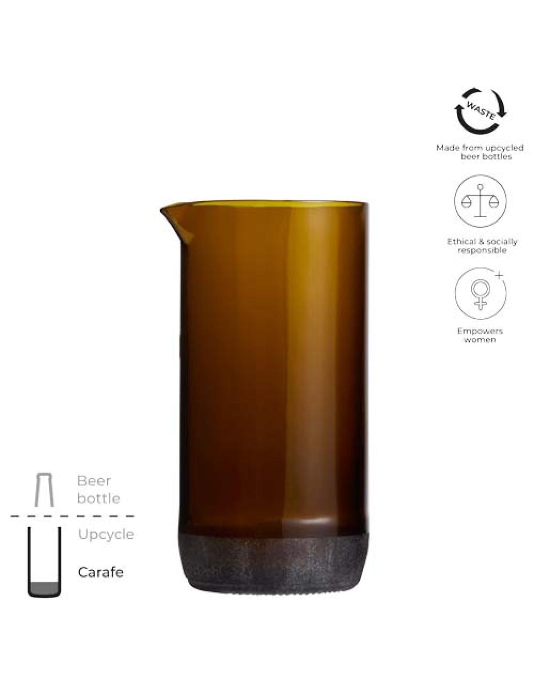 Jarra de agua de 430 ml hecha a mano con botellas de cerveza recicladas, un residuo de la hostelería de Goa (India). Se entrega en una caja de regalo.