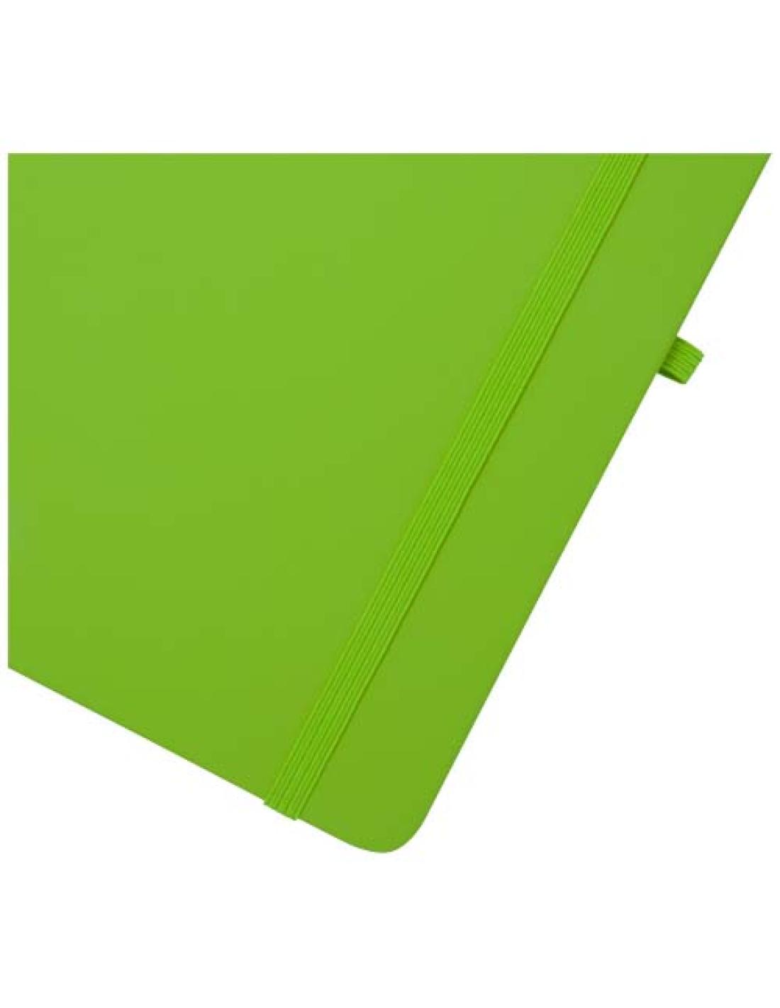 La libreta de tapa dura "Spectrum Plus" A5 con esquinas redondeadas no solo es un artículo de oficina esencial, sino también una gran oportunidad para promocionar tu marca. La libreta de cartón tiene una tapa de tacto suave y 80 hojas rayadas de color crema de 70 g/m², ideales para anotar ideas rápidas o notas largas. La libreta tiene un soporte para bolígrafo, cierre elástico, marcador de cinta y bolsillo acordeón.