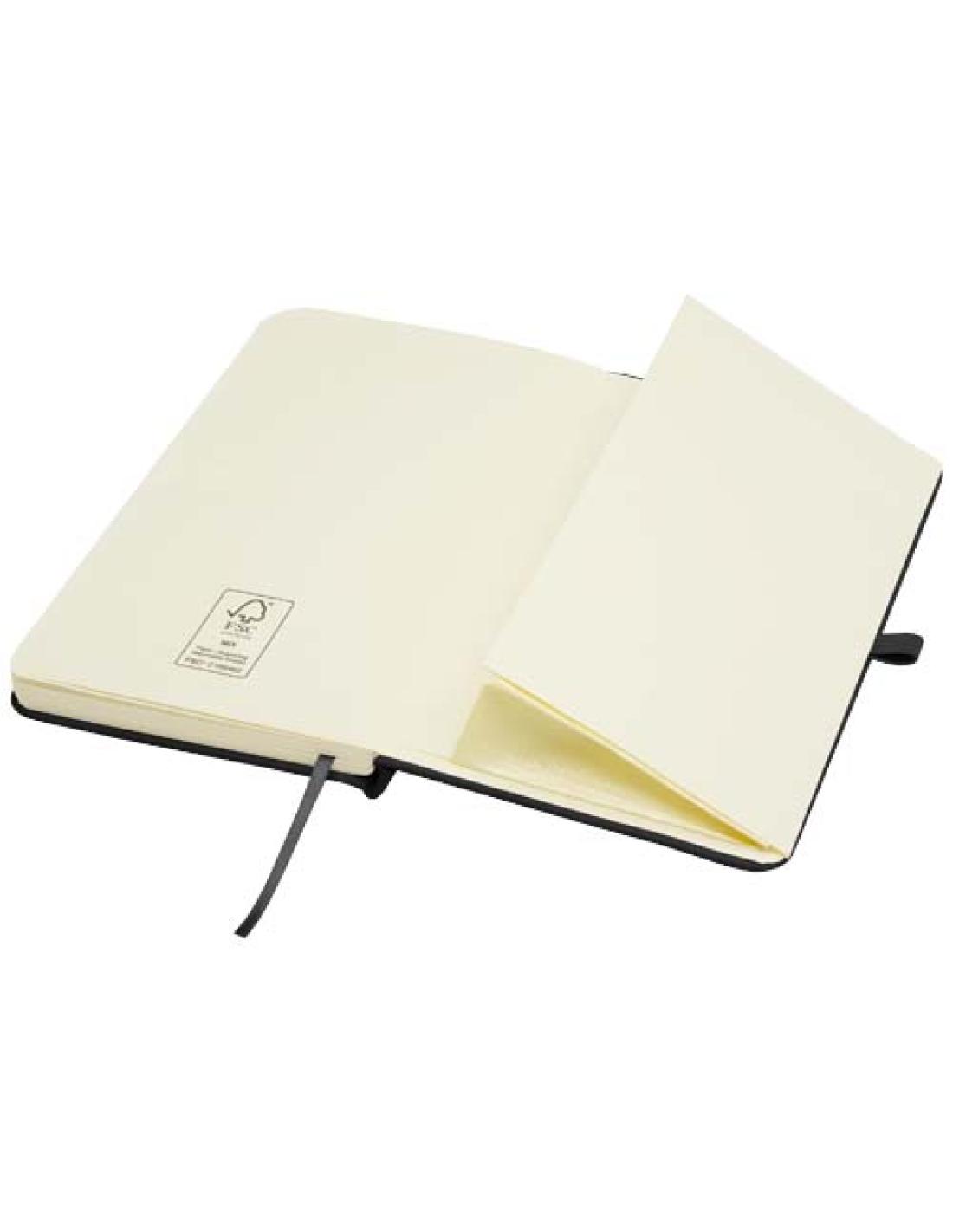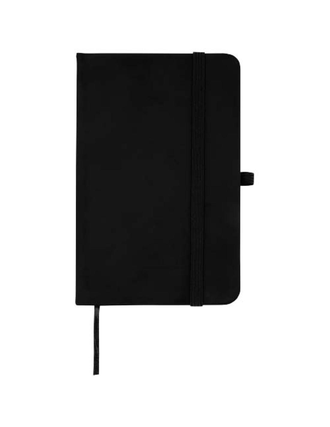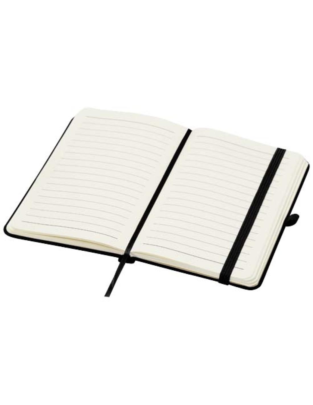 La libreta de tapa dura "Spectrum Plus" A6 con esquinas redondeadas no solo es un artículo de oficina esencial, sino también una gran oportunidad para promocionar tu marca. La libreta de cartón tiene una tapa de tacto suave y 80 hojas rayadas de color crema de 70 g/m², ideales para anotar ideas rápidas o notas largas. La libreta tiene un soporte para bolígrafo, cierre elástico, marcador de cinta y bolsillo acordeón.