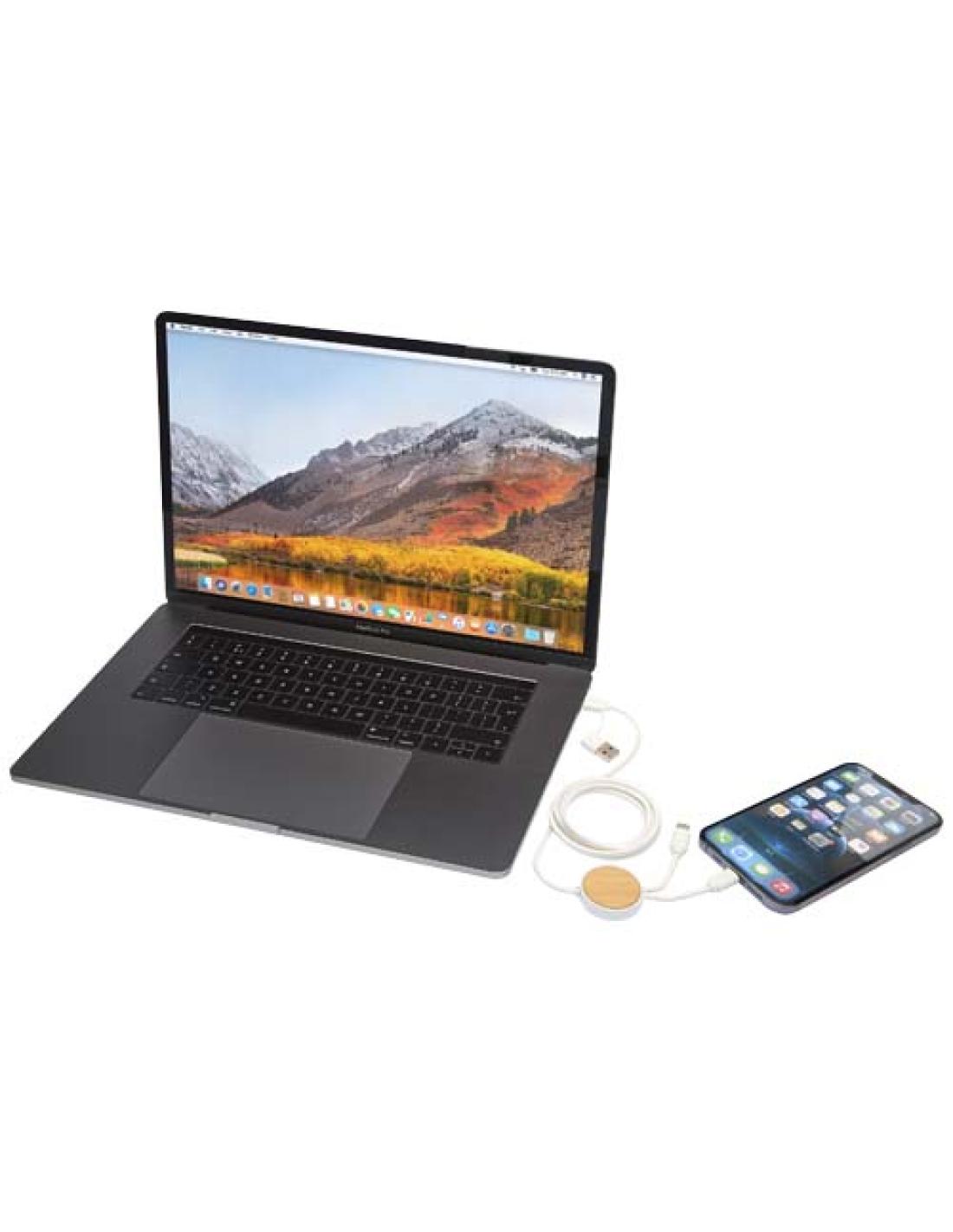 Cable 5 en 1 de plástico reciclado de 150 cm para sincronización de datos y carga rápida de 27 W con detalles de bambú N10224421