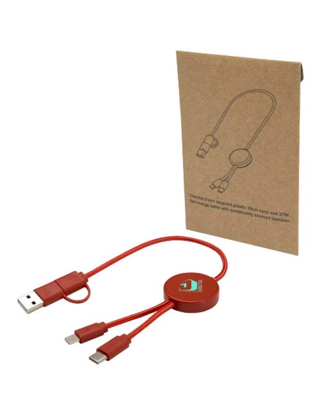 Cable 5 en 1 de plástico reciclado de 30 cm para sincronización de datos y carga rápida de 27 W N10724421