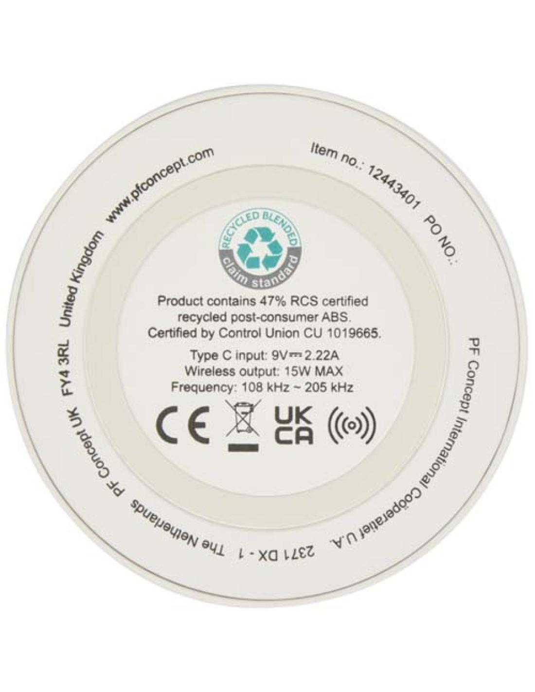 Base de carga inalámbrica de plástico reciclado de 15 W N10434421