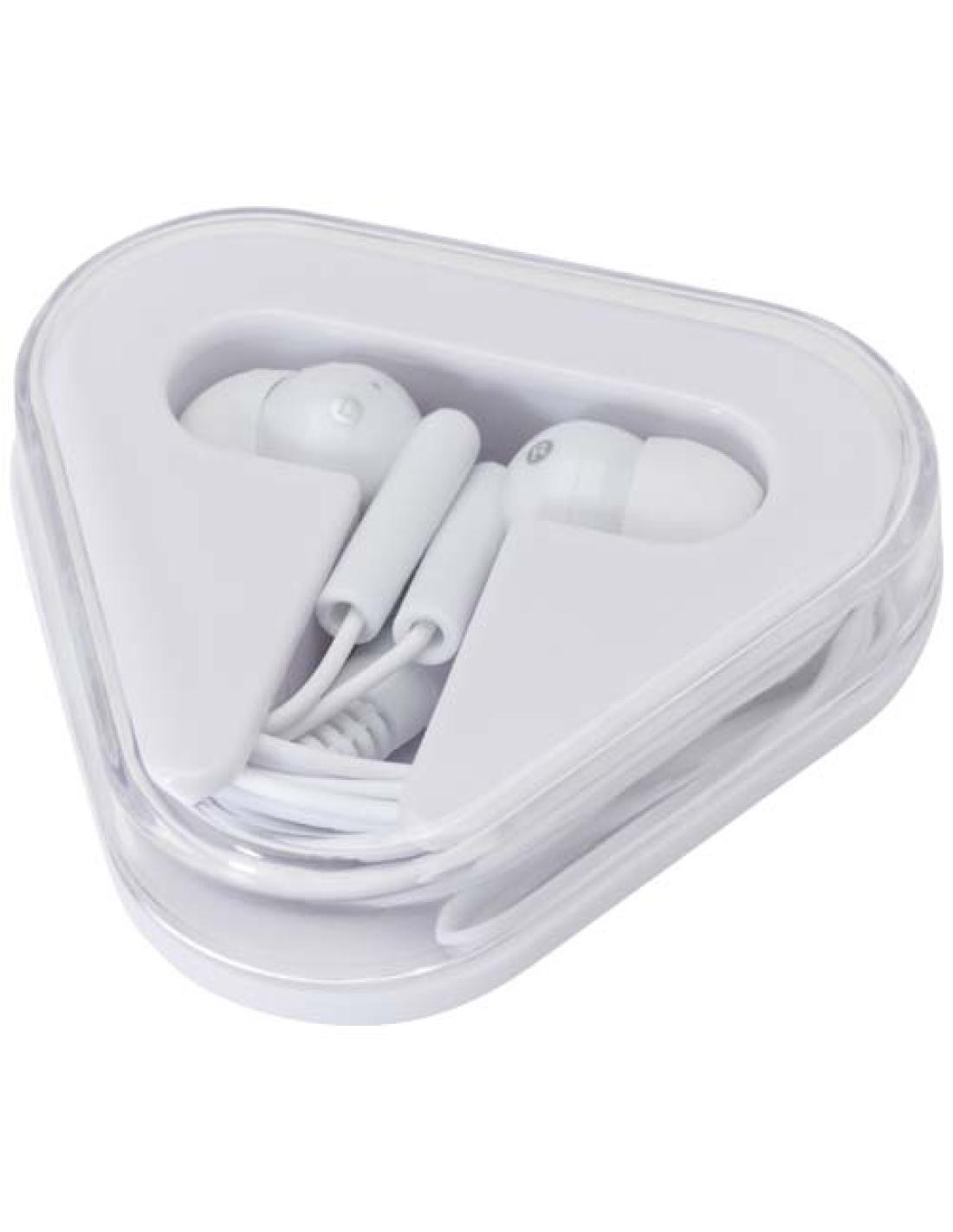Los auriculares "Rebel" son sencillos y se pueden utilizar con cualquier dispositivo de audio estándar con un conector de audio de 3,5 mm. Los auriculares vienen en un estuche triangular con compartimento para el cable fabricado en plástico reciclado, que los protege bien de cualquier daño externo.