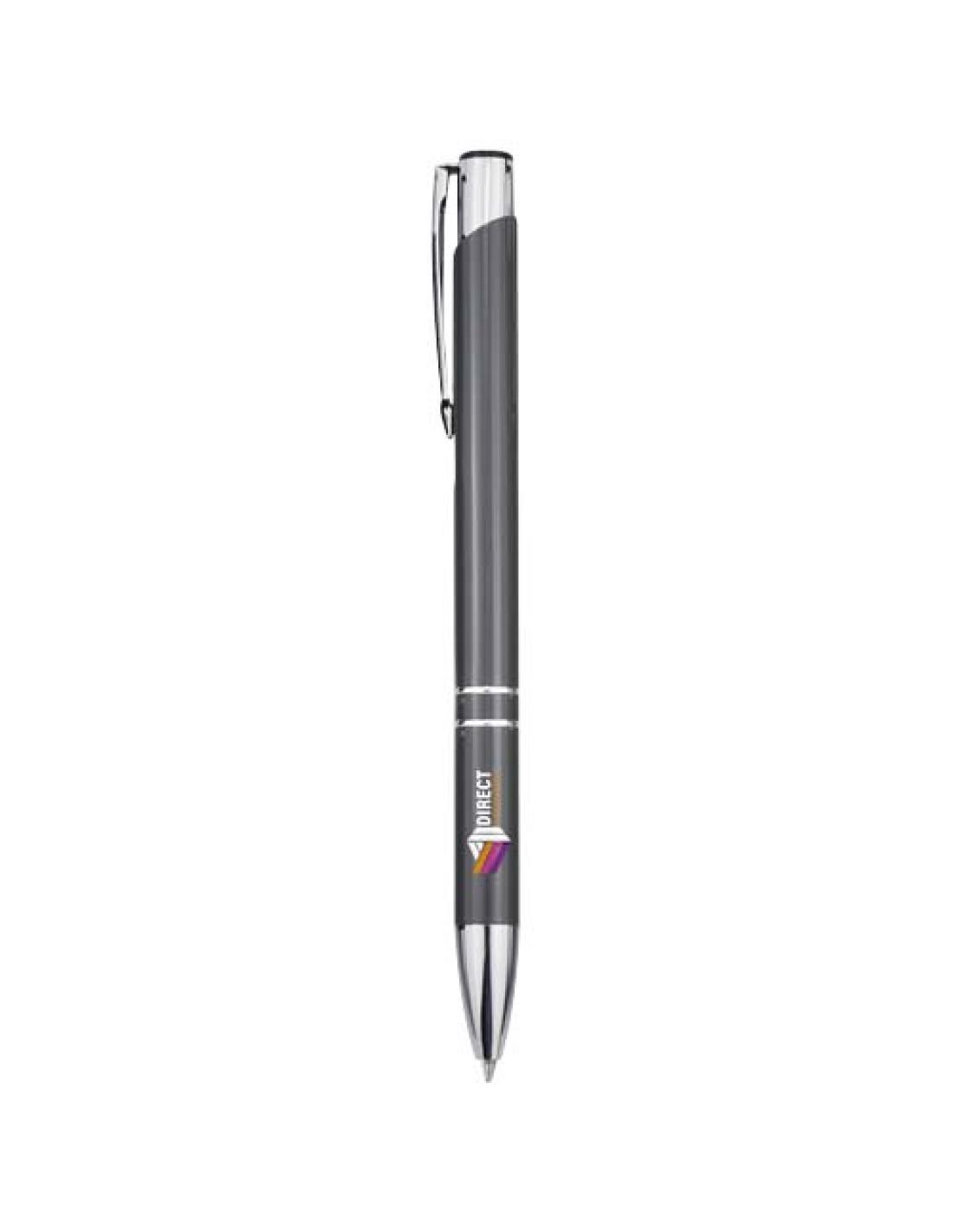 Bolígrafo de aluminio reciclado con acabado lacado, brillo pulido y llamativos detalles cromados. El aluminio reciclado disminuye la cantidad de residuos en los vertederos y ayuda a conservar los recursos naturales con el objetivo de reducir las emisiones de gases de efecto invernadero. Color de la tinta: Azul. Longitud de escritura: 1000 metros. Tamaño del plumín: 1,00 mm.
