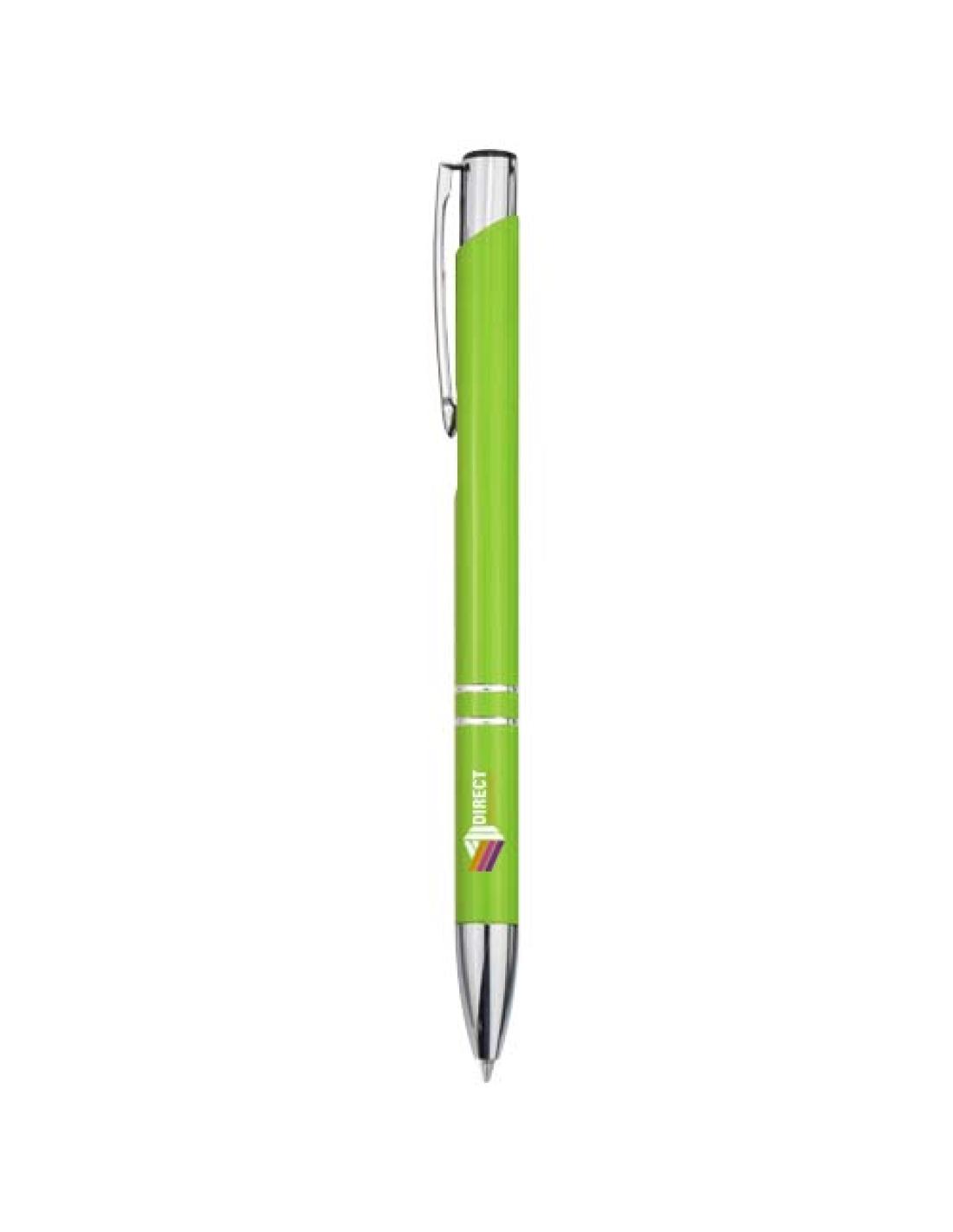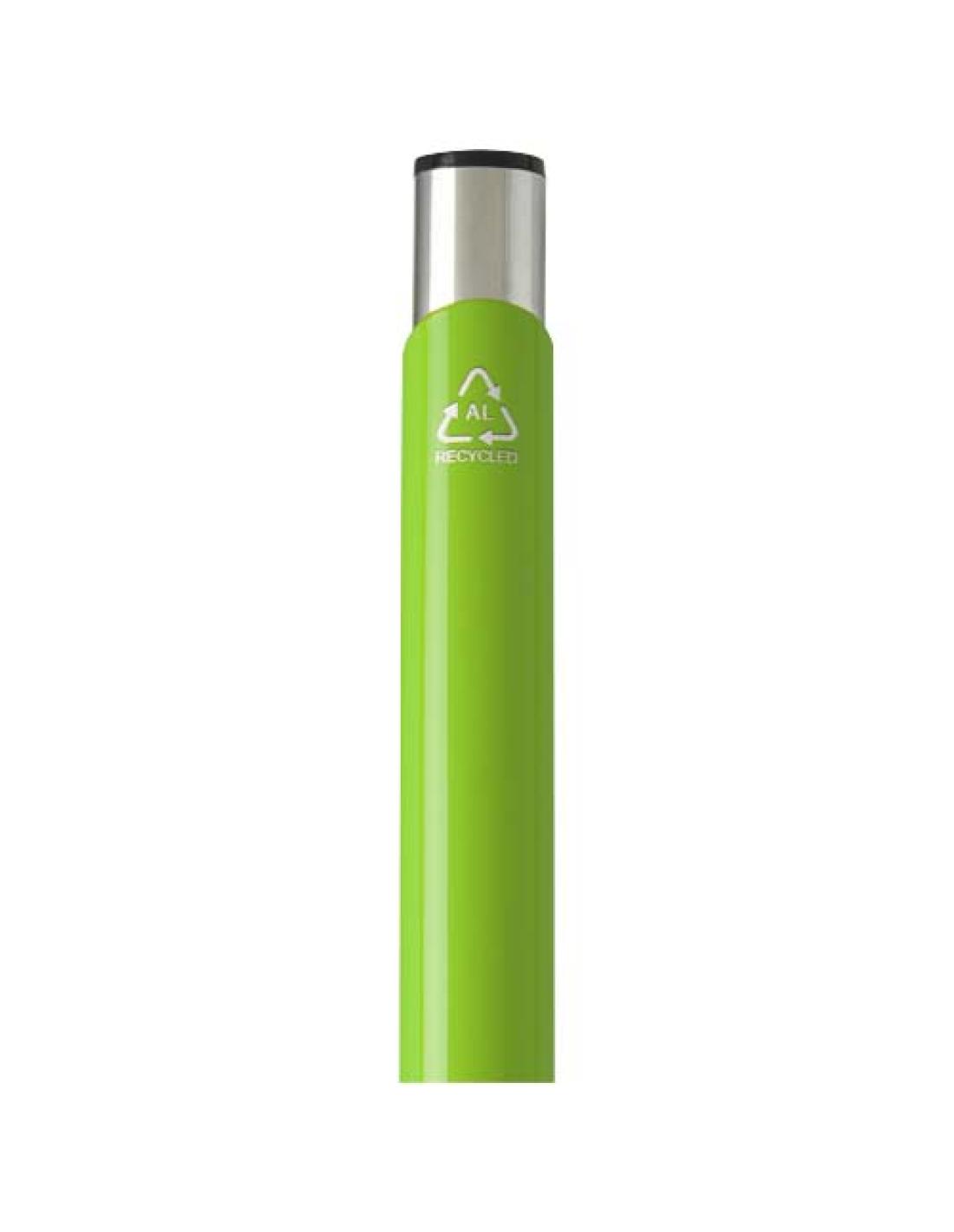 Bolígrafo de aluminio reciclado con acabado lacado, brillo pulido y llamativos detalles cromados. El aluminio reciclado disminuye la cantidad de residuos en los vertederos y ayuda a conservar los recursos naturales con el objetivo de reducir las emisiones de gases de efecto invernadero. Color de la tinta: Azul. Longitud de escritura: 1000 metros. Tamaño del plumín: 1,00 mm.