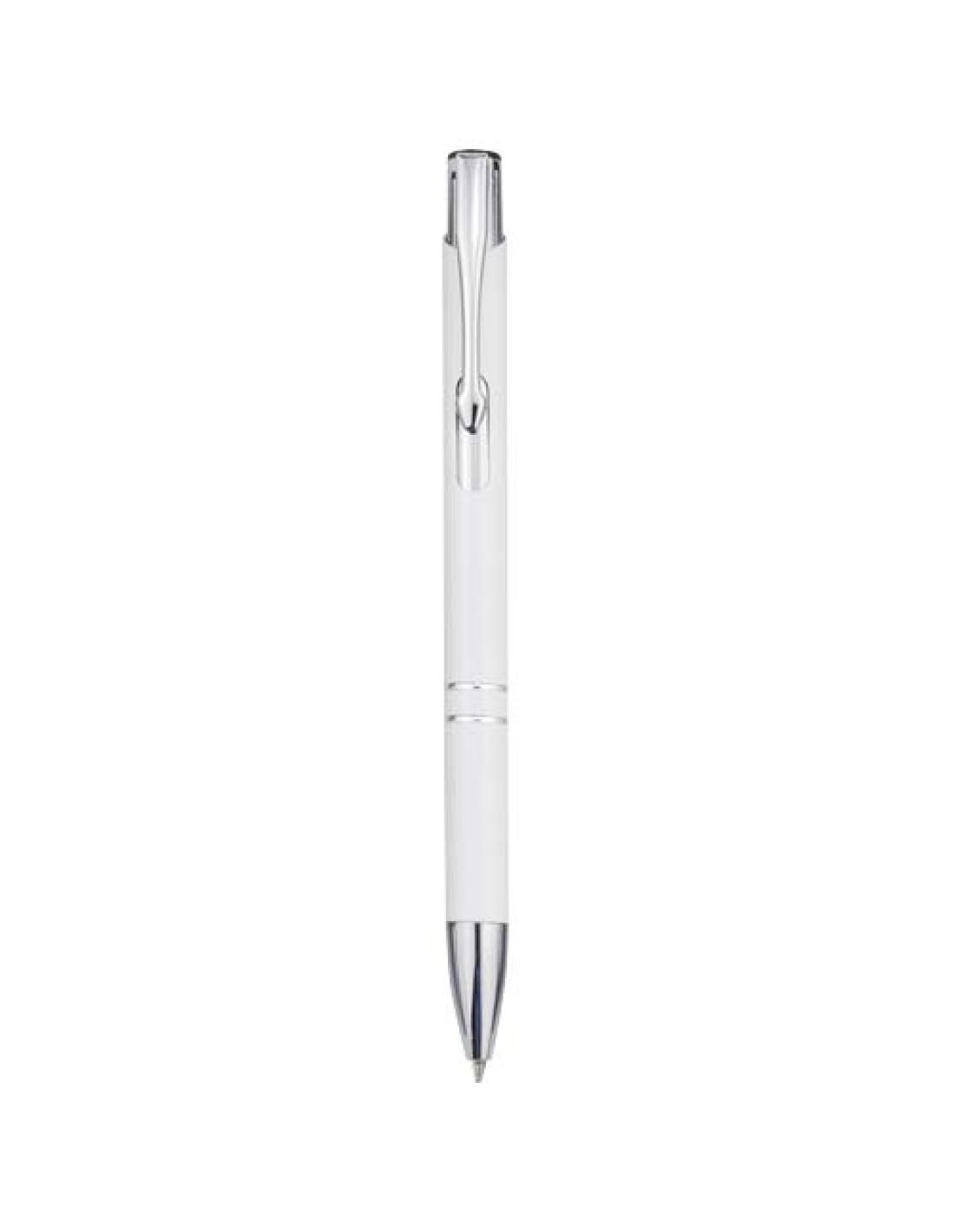 Bolígrafo de aluminio reciclado con acabado lacado, brillo pulido y llamativos detalles cromados. El aluminio reciclado disminuye la cantidad de residuos en los vertederos y ayuda a conservar los recursos naturales con el objetivo de reducir las emisiones de gases de efecto invernadero. Color de la tinta: Azul. Longitud de escritura: 1000 metros. Tamaño del plumín: 1,00 mm.