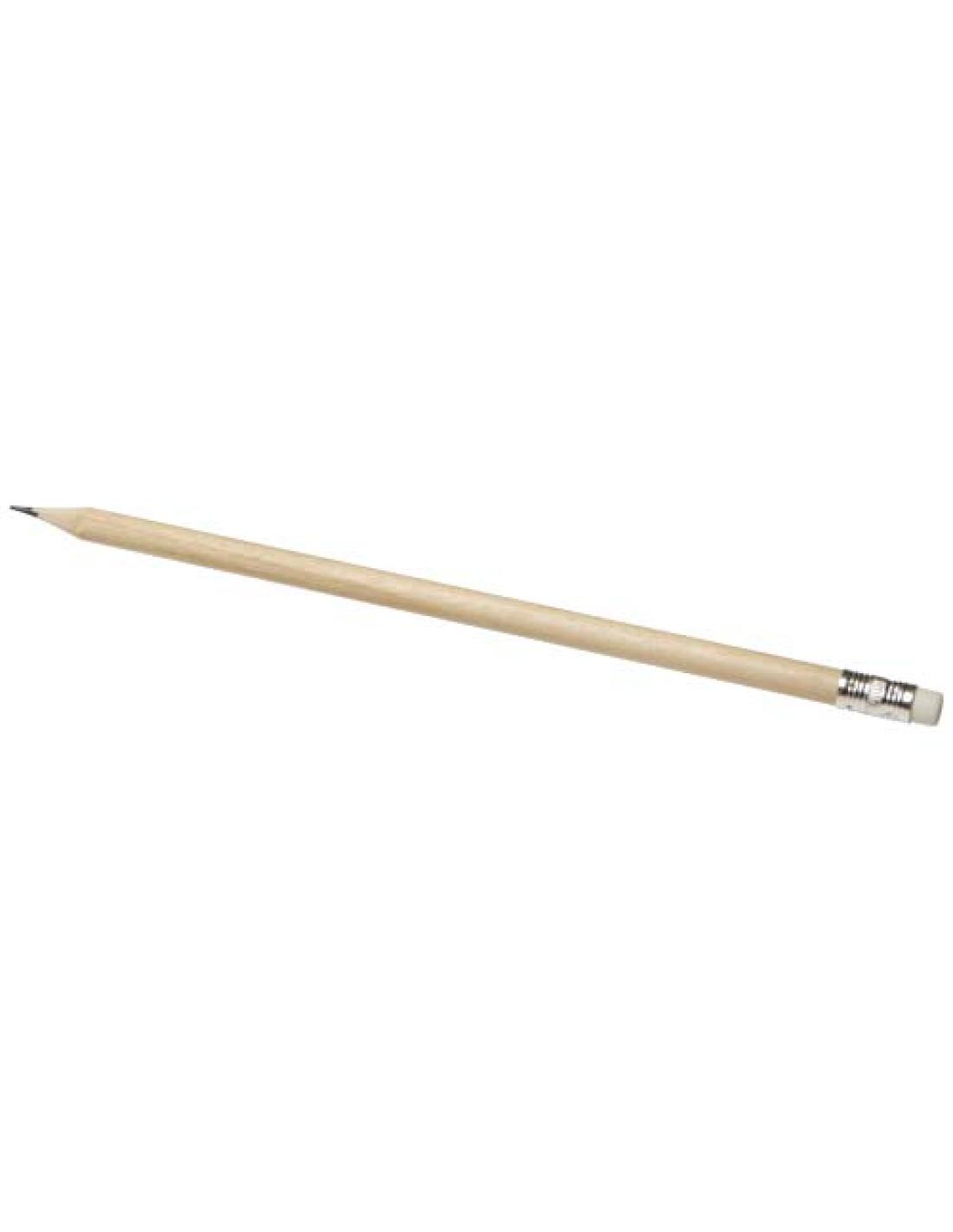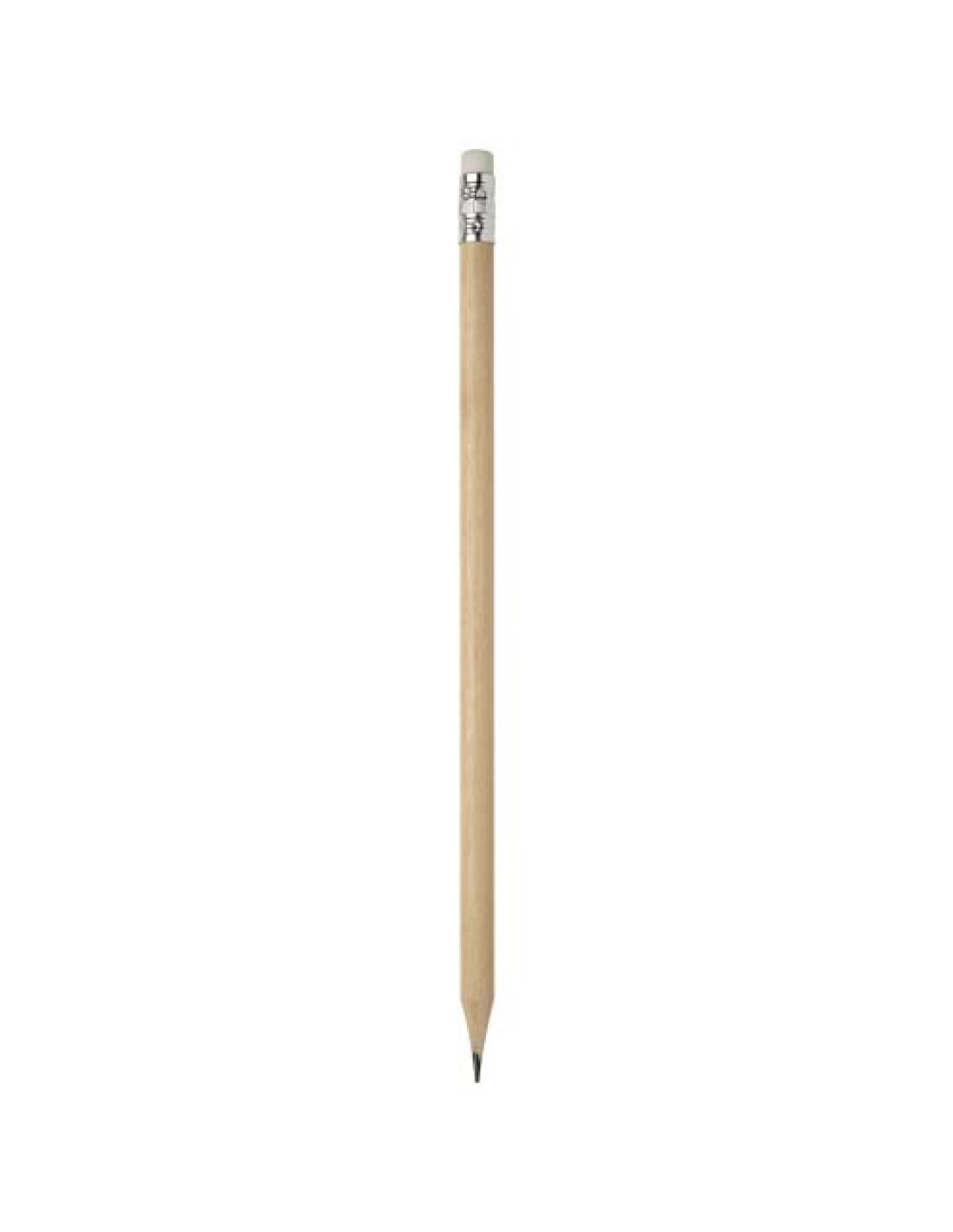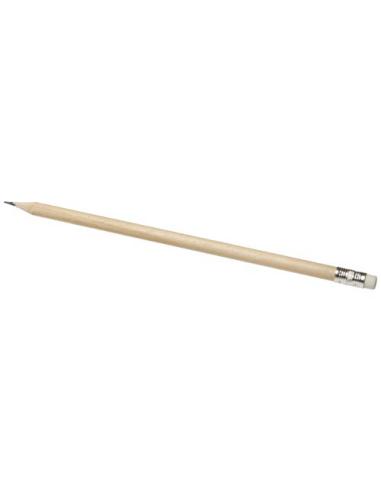 Lápiz con goma de borrar. El lápiz es de madera de álamo y grafito, la goma de plástico y la virola de aluminio.