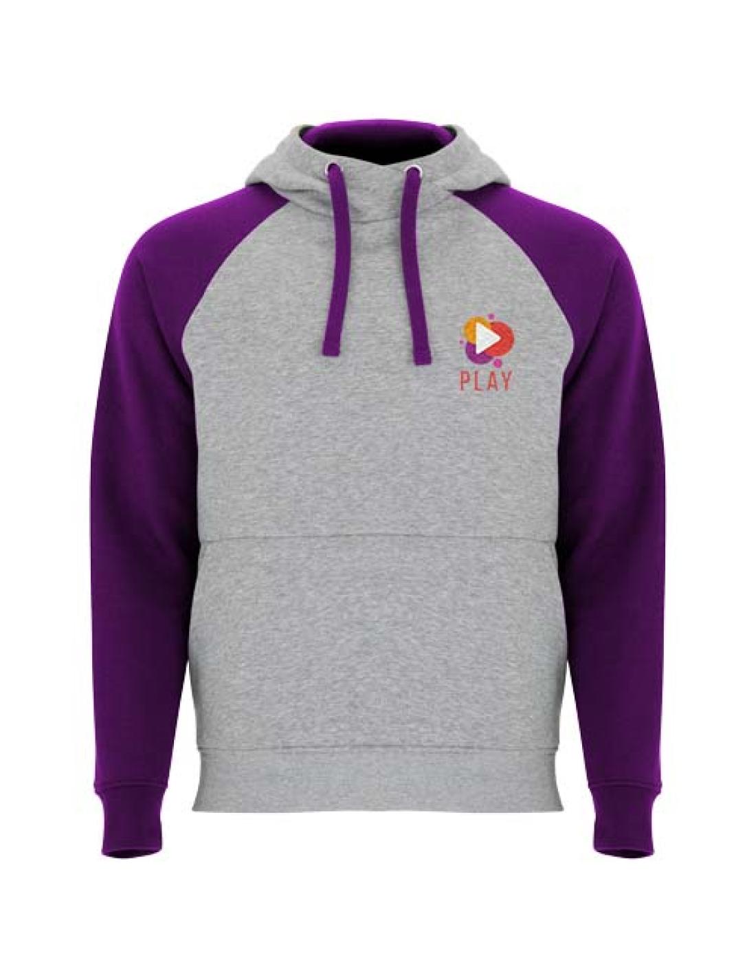 Sudadera con capucha bicolor unisex. Capucha con cuello cruzado y ojales metálicos. Interior de la capucha, cordón de ajuste y mangas raglán en contraste. Bolsillo tipo canguro. Puños y dobladillo de punto de elastano 1× 1. Etiqueta extraíble.