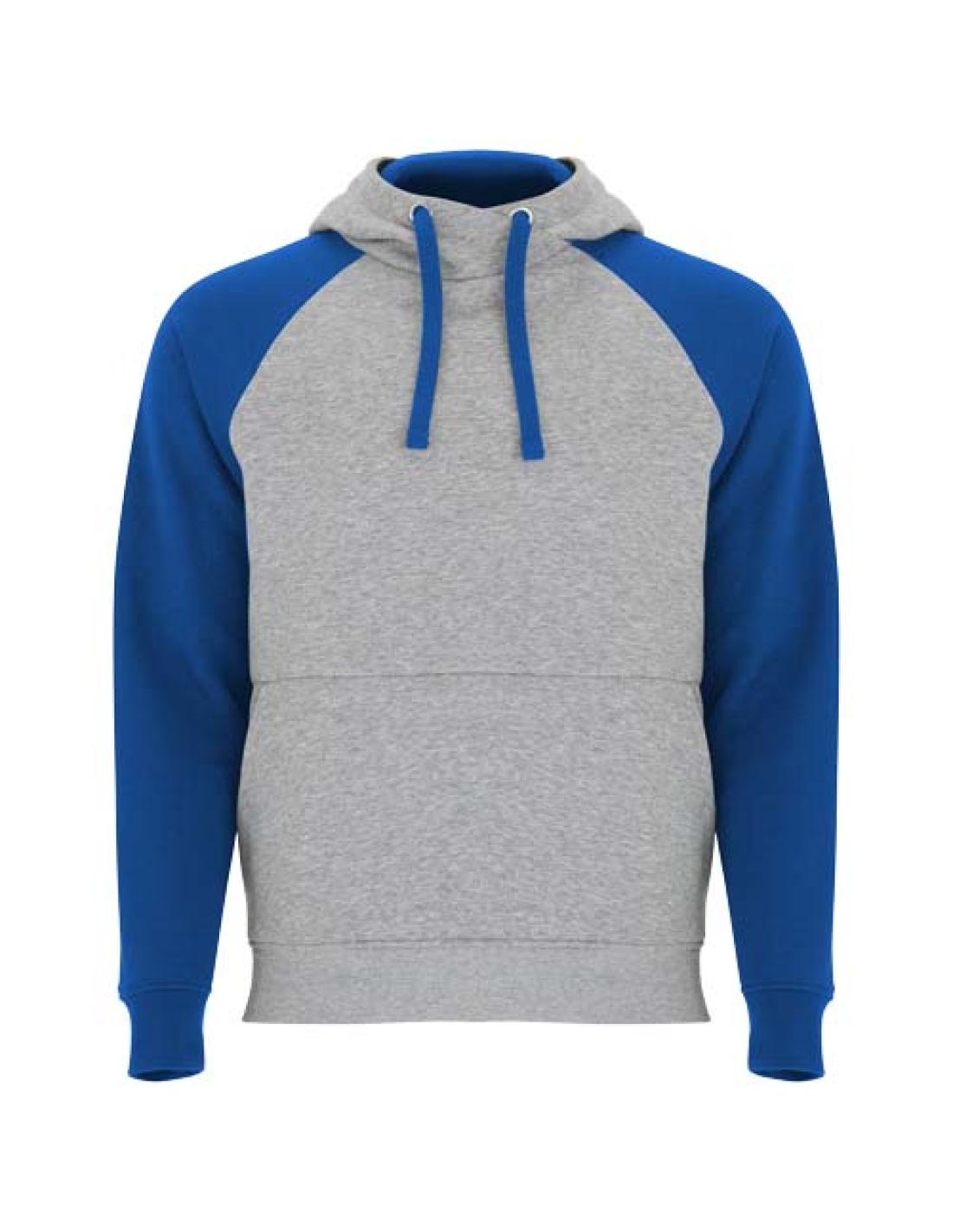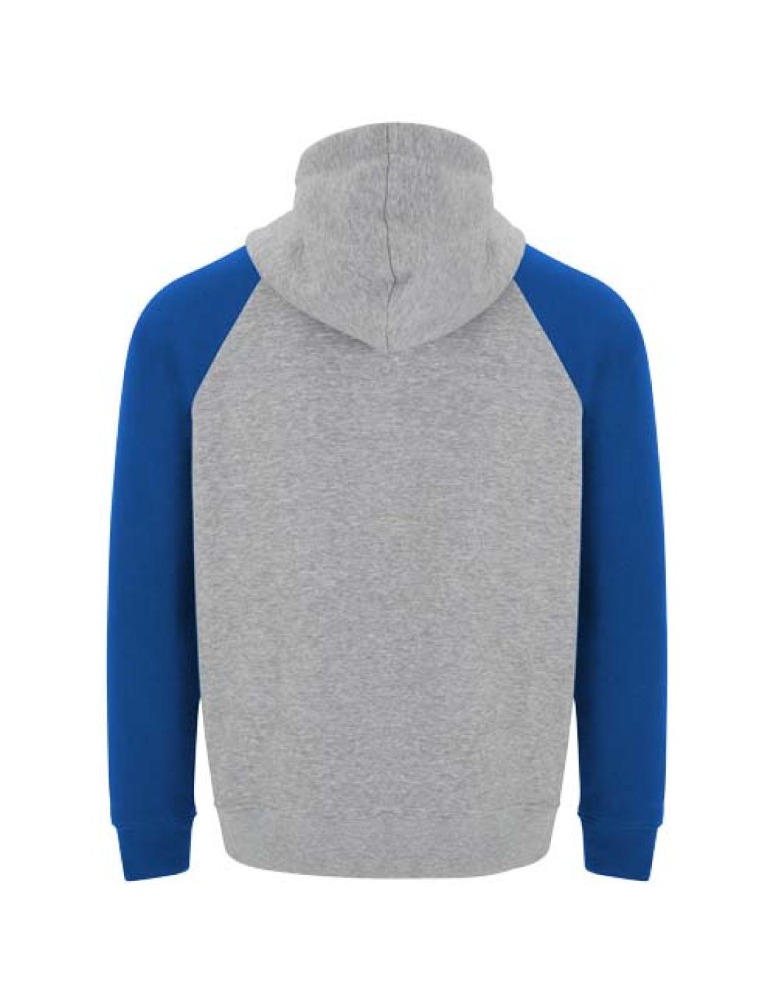 Sudadera con capucha bicolor unisex. Capucha con cuello cruzado y ojales metálicos. Interior de la capucha, cordón de ajuste y mangas raglán en contraste. Bolsillo tipo canguro. Puños y dobladillo de punto de elastano 1× 1. Etiqueta extraíble.