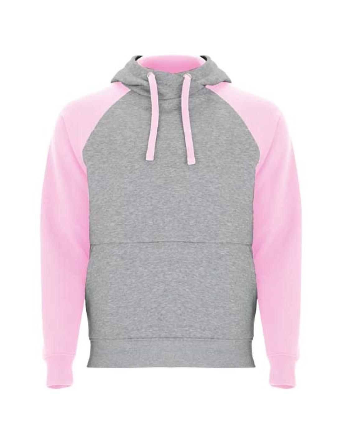 Sudadera con capucha bicolor unisex. Capucha con cuello cruzado y ojales metálicos. Interior de la capucha, cordón de ajuste y mangas raglán en contraste. Bolsillo tipo canguro. Puños y dobladillo de punto de elastano 1× 1. Etiqueta extraíble.