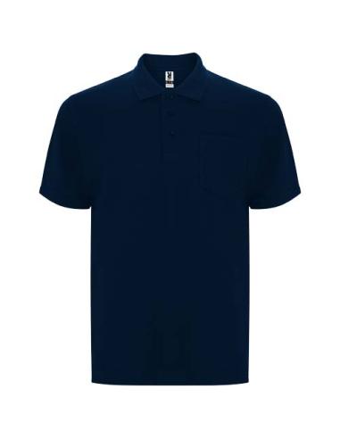 Polo de manga corta con bolsillo en la parte izquierda del pecho. Cuello y puños en tejido acanalado 1 × 1 con detalle. Tapeta de 3 botones. Costuras cubiertas reforzadas en el cuello. Etiqueta extraíble. Tratamiento antibolitas.