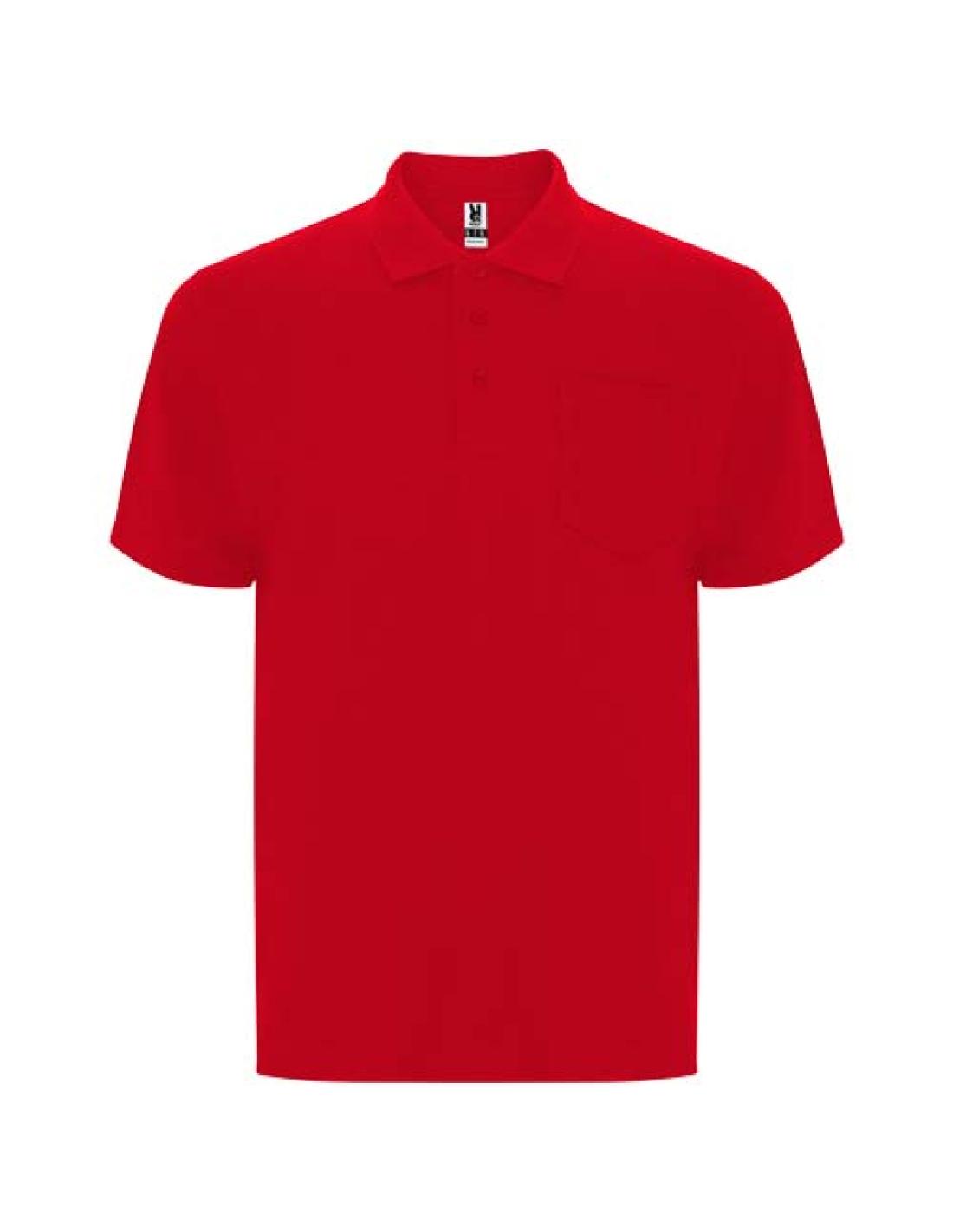 Polo de manga corta con bolsillo en la parte izquierda del pecho. Cuello y puños en tejido acanalado 1 × 1 con detalle. Tapeta de 3 botones. Costuras cubiertas reforzadas en el cuello. Etiqueta extraíble. Tratamiento antibolitas.