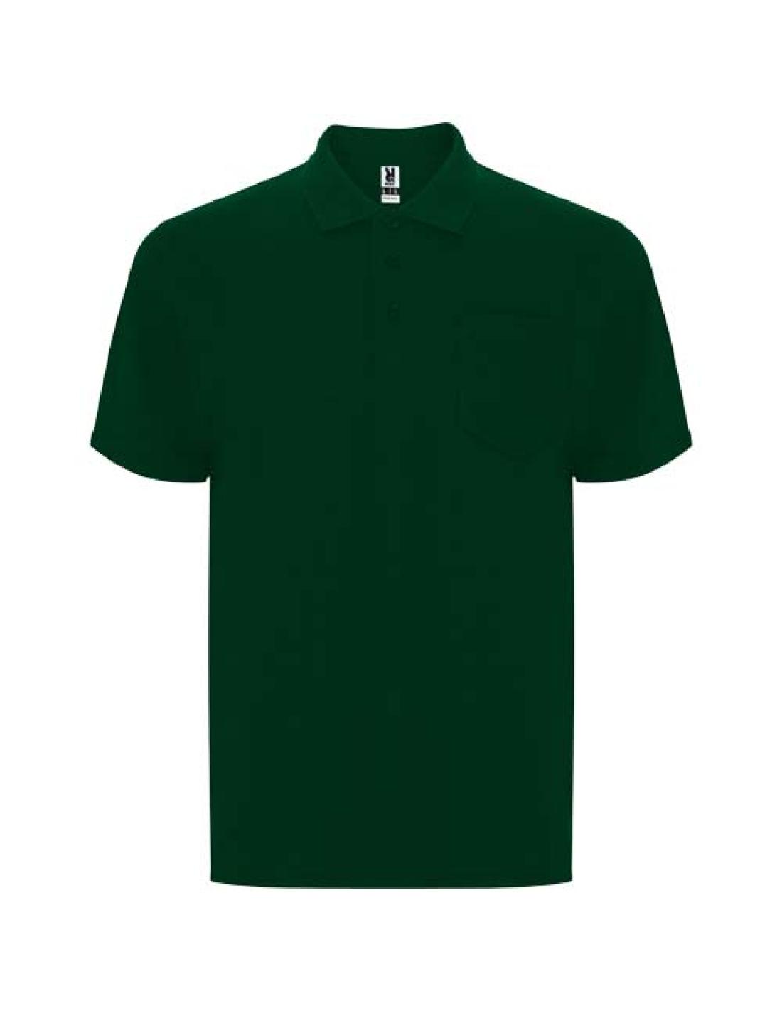 Polo de manga corta con bolsillo en la parte izquierda del pecho. Cuello y puños en tejido acanalado 1 × 1 con detalle. Tapeta de 3 botones. Costuras cubiertas reforzadas en el cuello. Etiqueta extraíble. Tratamiento antibolitas.