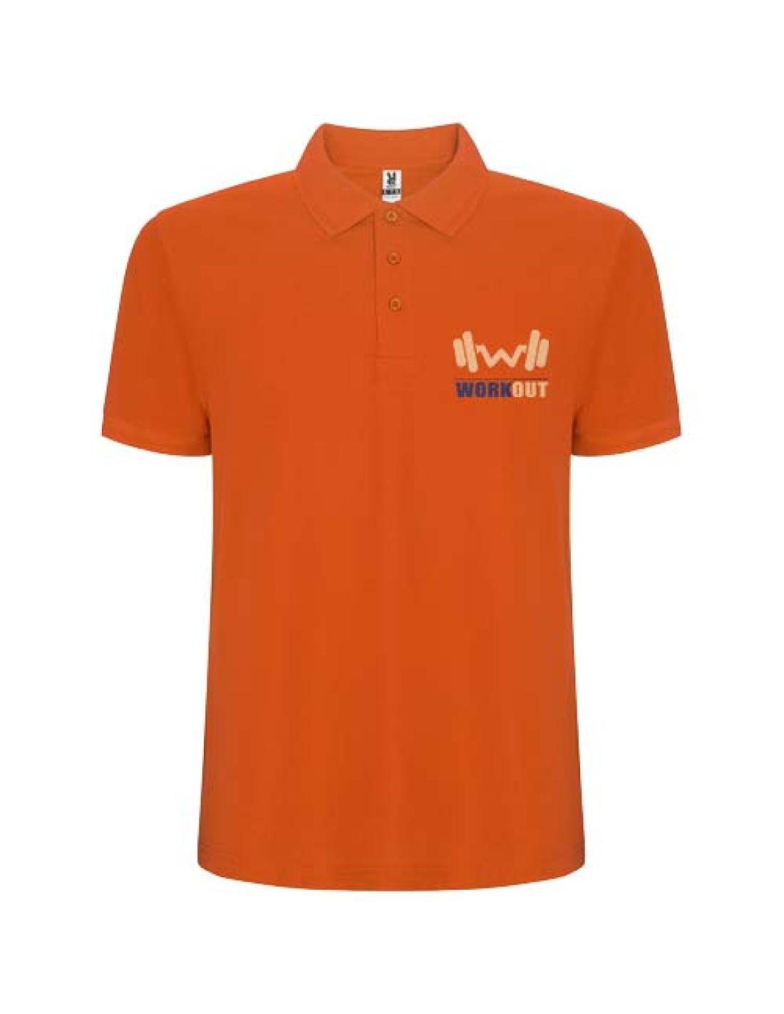 Polo de manga corta. Cuello y mangas ribeteados en tejido acanalado 1 × 1 con detalle. Tapeta de 3 botones. Costuras cubiertas reforzadas en el cuello. Aberturas laterales y bolsillo opcional. Lavable a 60 grados. Etiqueta extraíble. Tratamiento antibolitas.