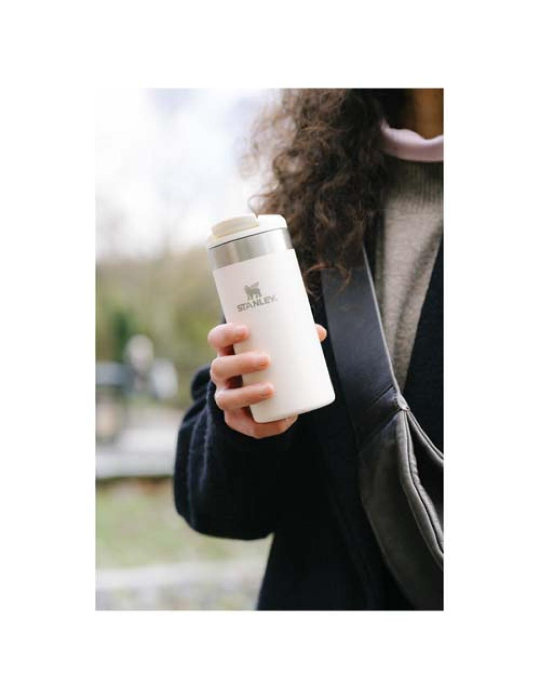 El vaso de viaje de 350 ml y pared doble con aislamiento térmico "Stanley AeroLight™" tiene un diseño ligero que no afecta a la temperatura deseada de la bebida, manteniéndola caliente durante 6 horas o fría durante 8. El vaso es hermético y tiene una tapa con cierre de rosca. Así pues, no tendrá que preocuparse por los derrames cuando meta la botella en la bolsa y se suba al tren de cercanías o comience a hacer ejercicio. Además, el vaso "AeroLight™" es apto para lavavajillas, no contiene BPA y está diseñado para facilitar su limpieza. Se adapta a la mayoría de los portavasos de coche. Los vasos de viaje son un 33 % más ligeros que los vasos de acero inoxidable habituales de "Stanley".