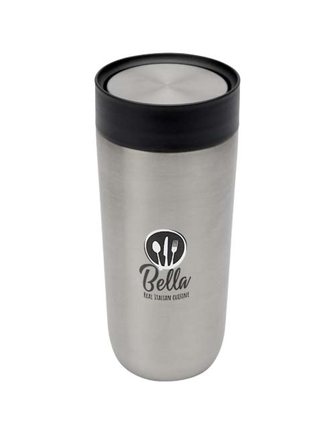 Vaso de alta calidad con un práctico mecanismo de apertura de acero inoxidable que permite abrirlo con una sola mano. Cuerpo de acero inoxidable con certificado RCS y revestimiento duradero. La tapa está fabricada en acero inoxidable con certificado RCS y plástico PP. Cobreado y revestimiento cerámico. Se adapta a los portavasos de coche más comunes. Mantiene las bebidas 12 horas calientes o 24 horas frías. Se presenta en una caja de regalo de cartón reciclado. Capacidad: 350 ml.
