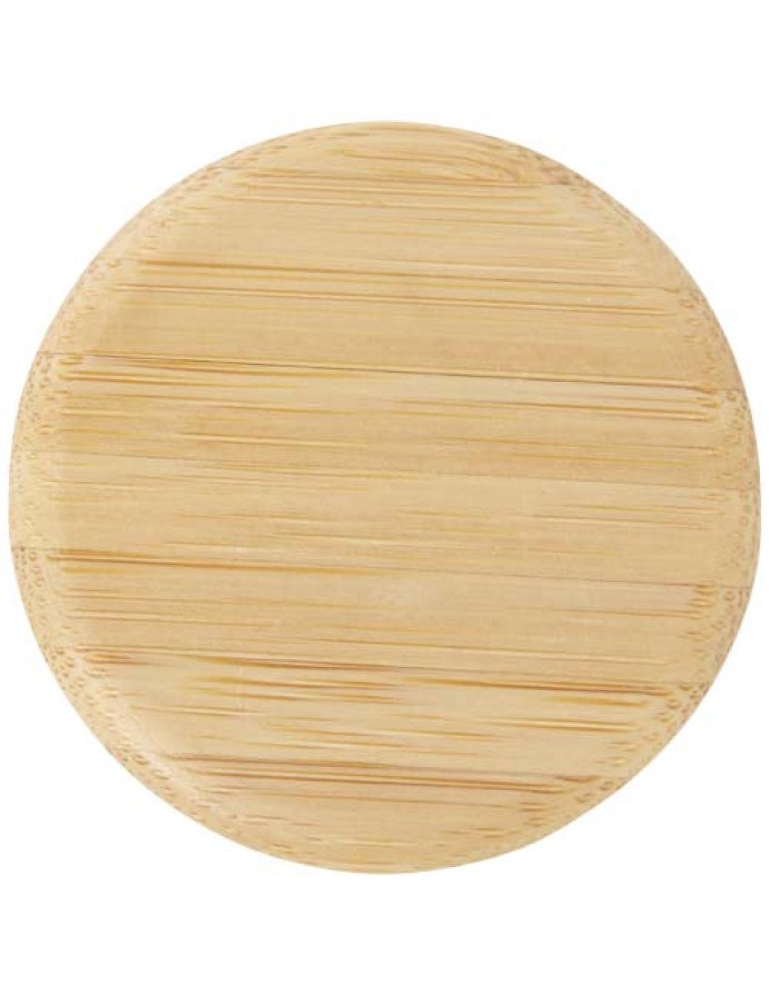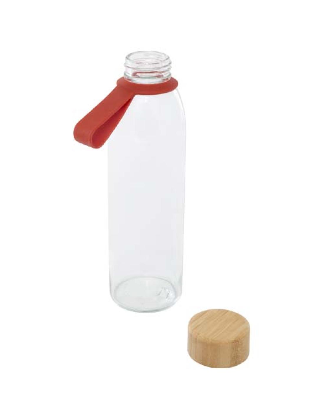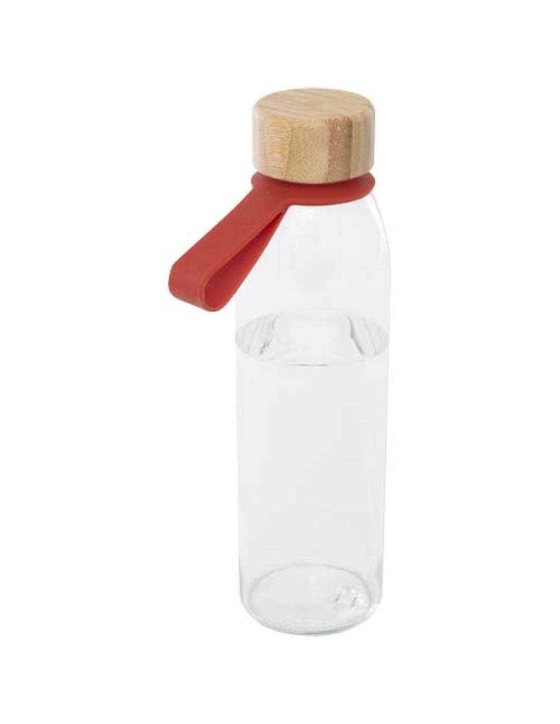 Botella de vidrio de una sola pared con tapón de rosca de bambú procedente de fuentes más sostenibles y socialmente responsables. Viene con una cómoda correa de silicona para facilitar su transporte. Se presenta en una caja de regalo de cartón reciclado. Capacidad: 500 ml.