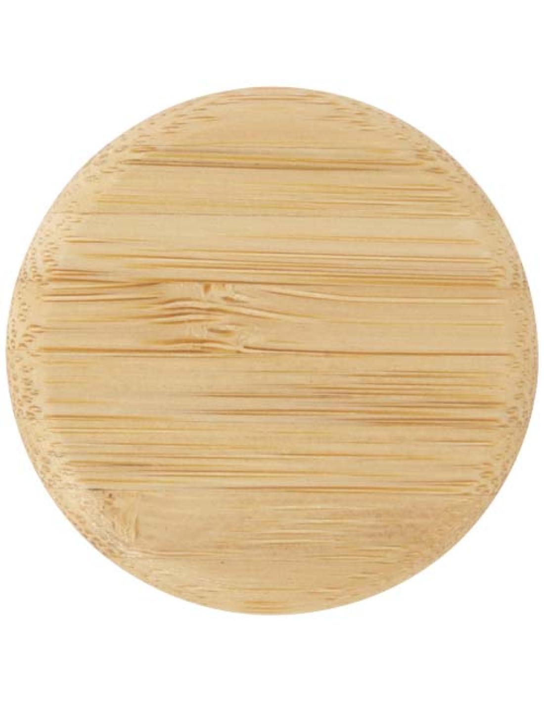 Botella de vidrio de una sola pared con tapón de rosca de bambú procedente de fuentes más sostenibles y socialmente responsables. Viene con una cómoda correa de silicona para facilitar su transporte. Se presenta en una caja de regalo de cartón reciclado. Capacidad: 500 ml.