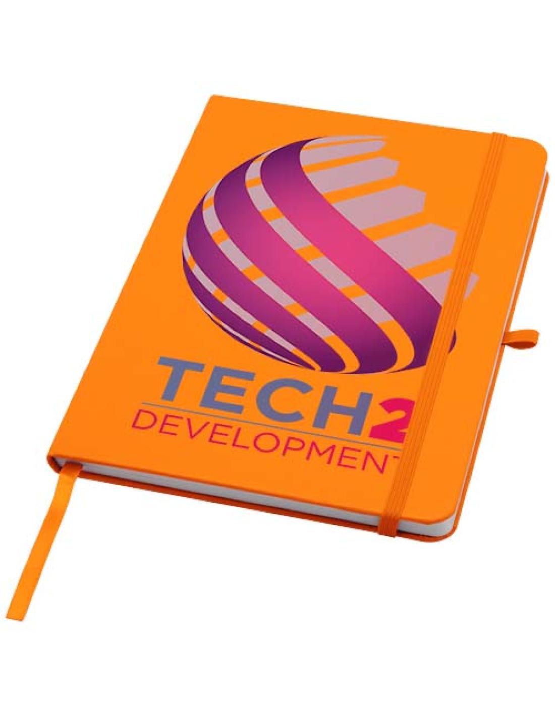 La libreta de tapa dura de cartón reciclado "Teak" A5 con esquinas redondeadas no solo es un artículo de oficina esencial, sino también una gran oportunidad para promocionar tu marca. La libreta tiene 96 hojas rayadas de papel de 70 g/m2 y una tapa de tacto suave. Incluye un soporte para bolígrafo, un cierre elástico y un marcador de cinta.