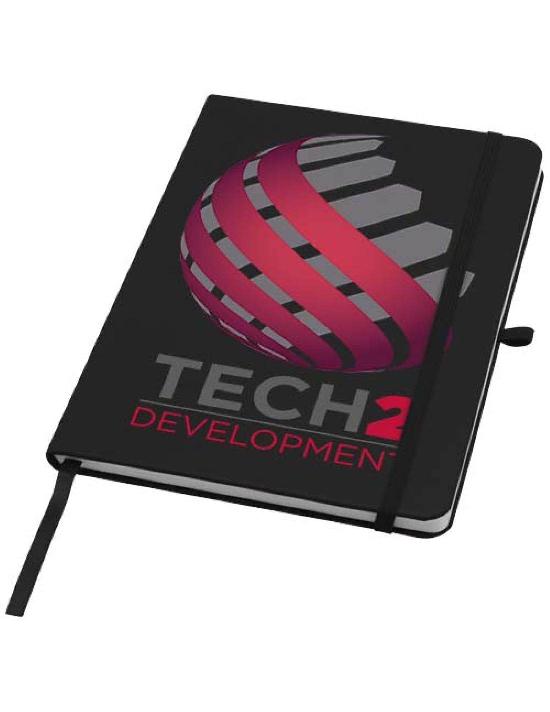 La libreta de tapa dura de cartón reciclado "Teak" A5 con esquinas redondeadas no solo es un artículo de oficina esencial, sino también una gran oportunidad para promocionar tu marca. La libreta tiene 96 hojas rayadas de papel de 70 g/m2 y una tapa de tacto suave. Incluye un soporte para bolígrafo, un cierre elástico y un marcador de cinta.
