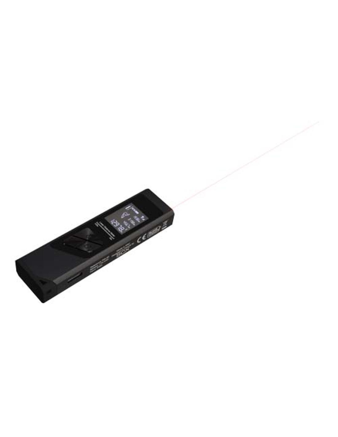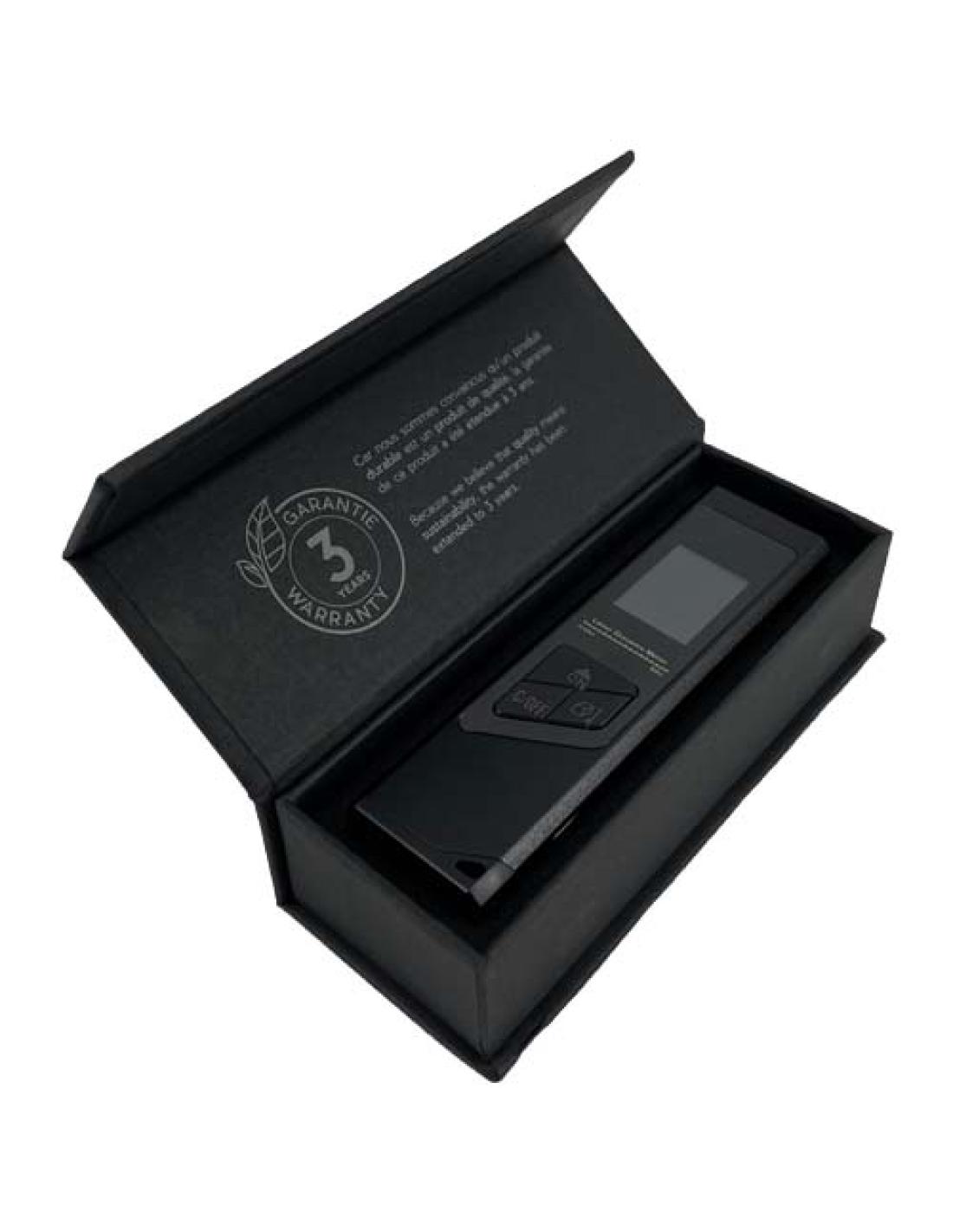 El minitelémetro láser es una forma fácil, rápida y precisa de medir el área y el volumen, también tiene función de Pitágoras. Con su tecnología de precisión láser y modo de medición en tiempo real, proporciona mediciones fiables hasta 40 metros. El telémetro usa una batería de iones de litio de 200 mAh de bajo consumo como fuente de alimentación y puede medir distancias 2000 veces después de la carga completa. Tiene una pantalla retroiluminada para una fácil visualización incluso en zonas oscuras. Tamaño: 9 x 2,4 x 1,1 cm. Se entrega en una caja de regalo de papel reciclado (10,2 x 4,2 x 3 cm) con cierre magnético. Incluye una garantía de tres años.