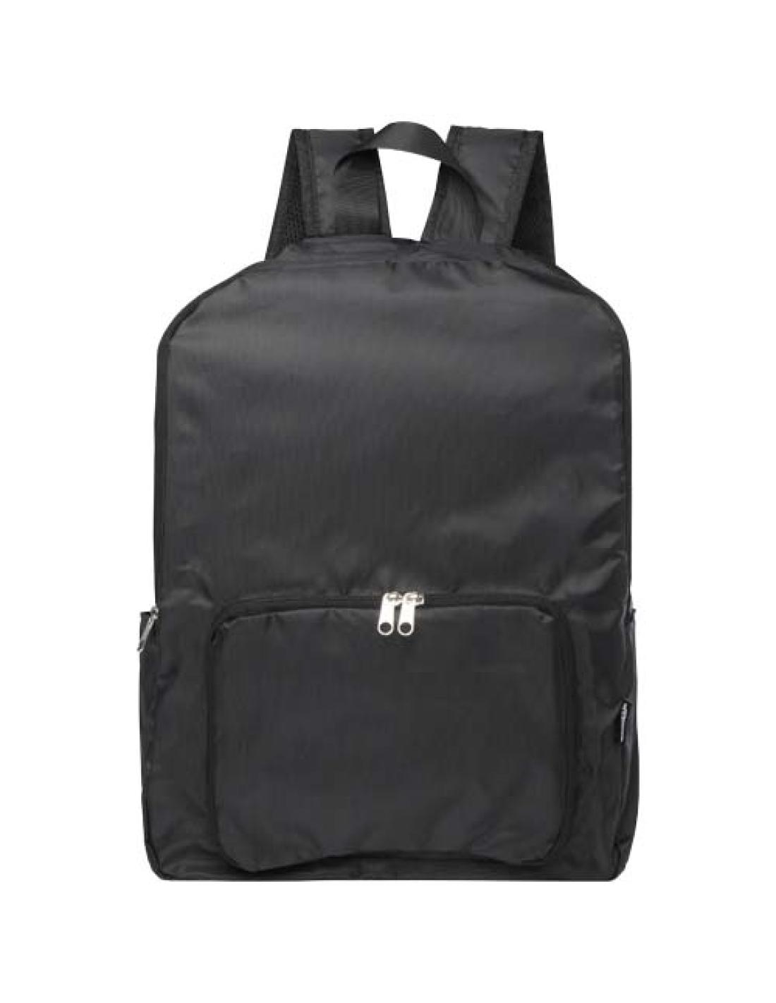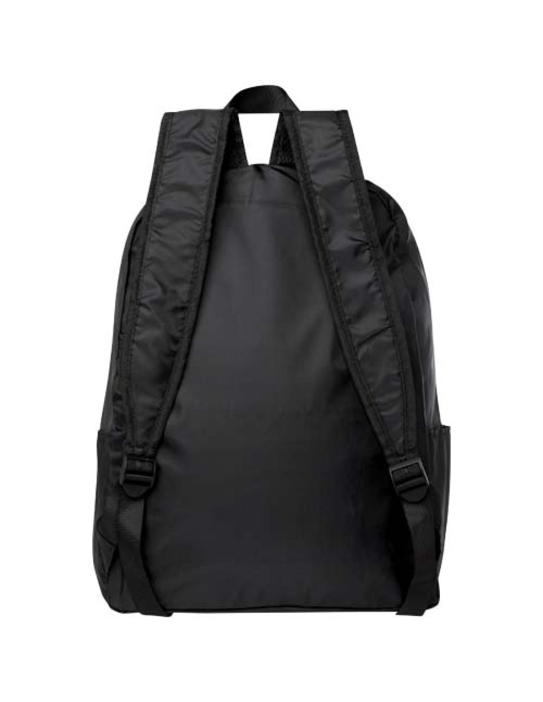 Diseñada para ofrecer comodidad y practicidad, esta mochila ligera y resistente se adapta a tus necesidades plegándose perfectamente en una bolsa compacta con una correa para colgarla o transportarla de forma fácil, lo que la hace perfecta para viajes, excursiones y uso diario. Tiene un compartimento principal con cremallera, un bolsillo frontal con cremallera, dos bolsillos laterales y tirantes ajustables. Fabricada en poliéster reciclado sin PVC. Capacidad: 15 litros.
