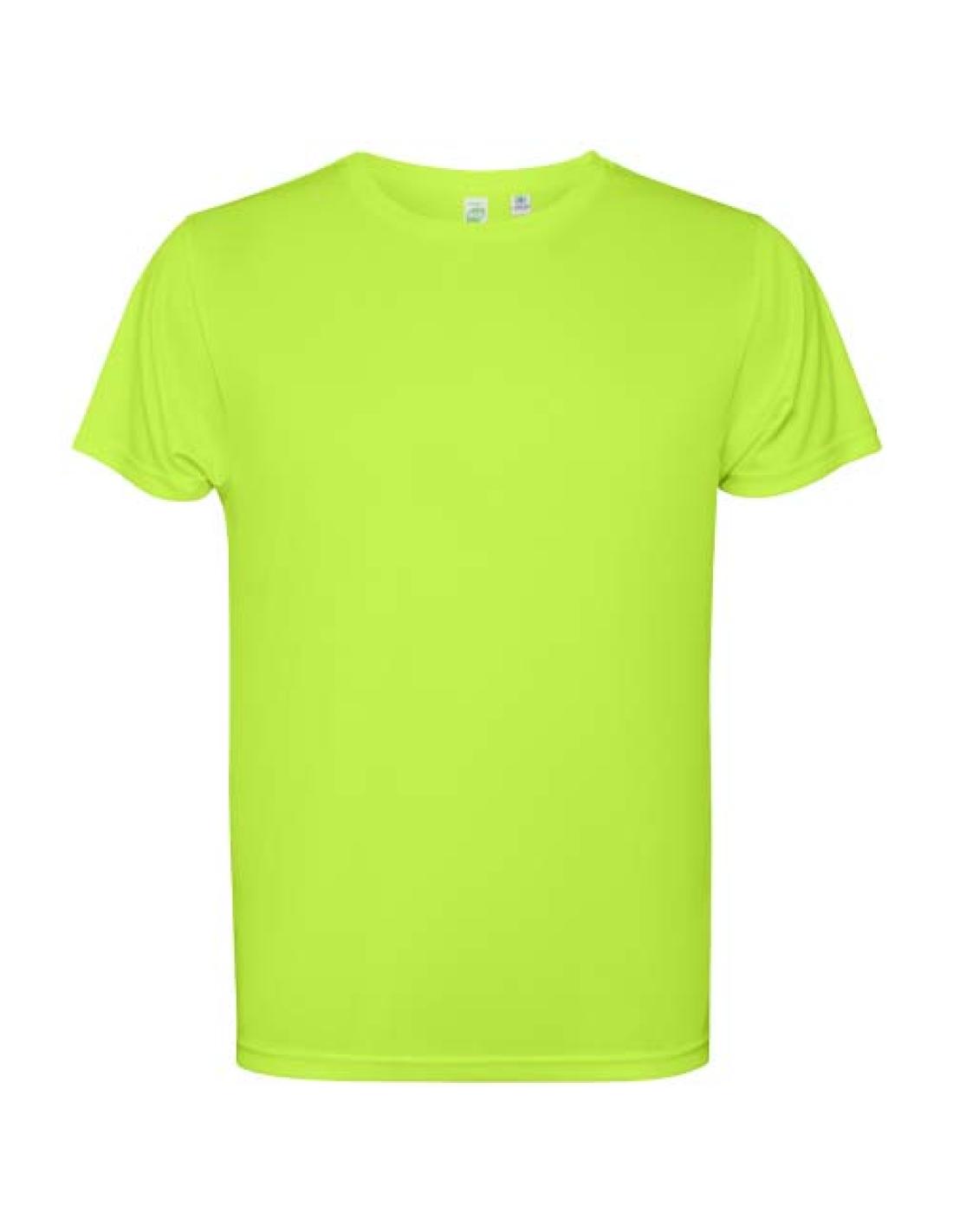 Camiseta técnica de manga corta para hombre. Cuello con costuras a juego. Dobladillo trasero ligeramente más largo que el delantero. Costuras laterales desplazadas hacia delante.