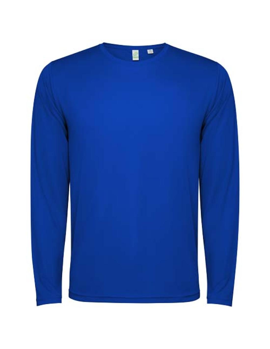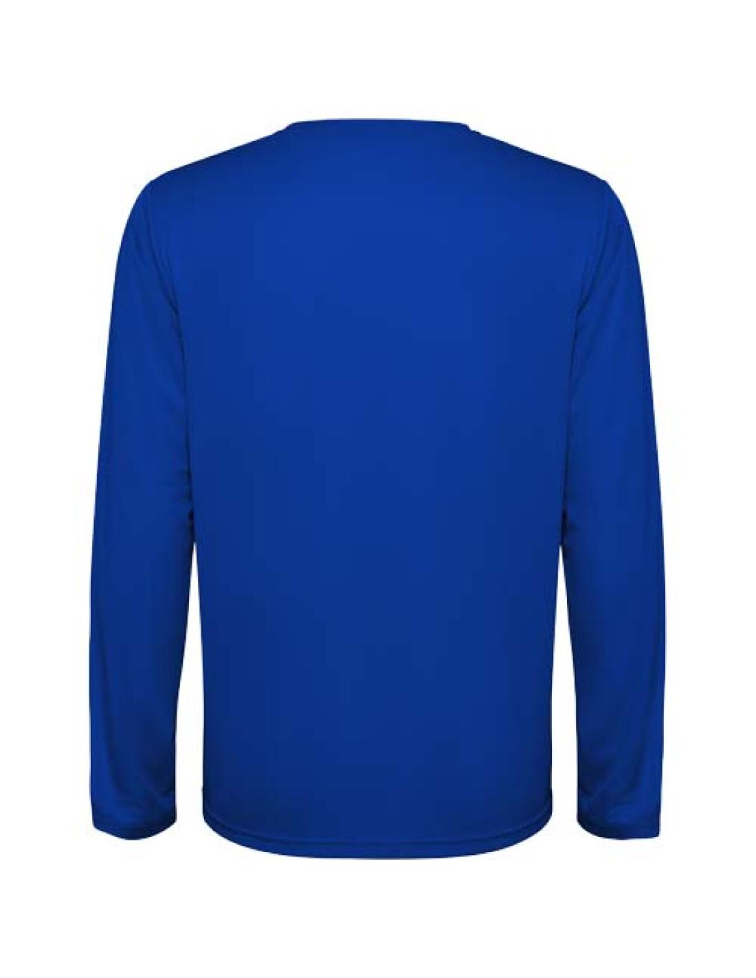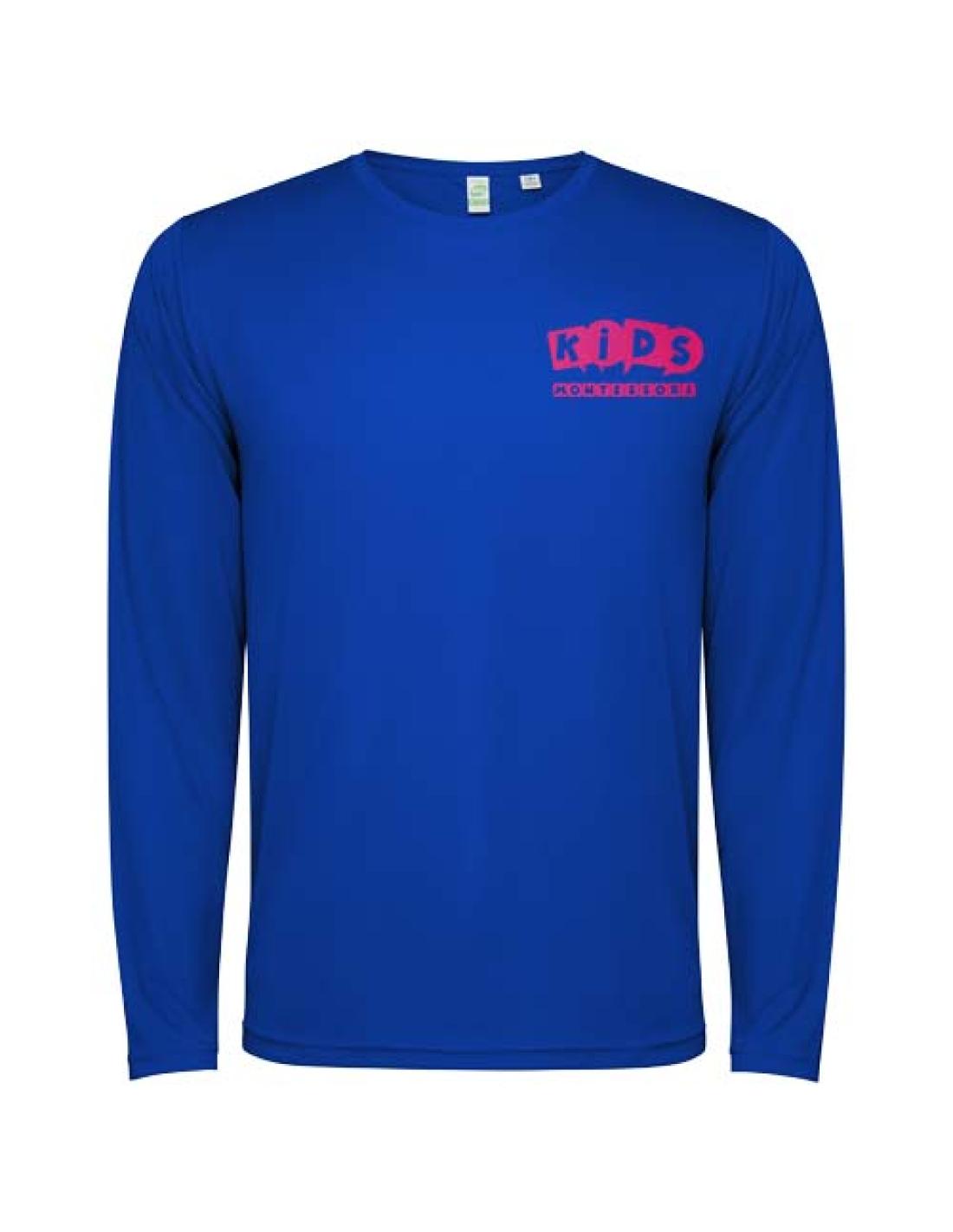 Camiseta técnica de manga larga infantil. Cuello con costuras a juego. Dobladillo trasero ligeramente más largo que el delantero. Costuras laterales desplazadas hacia delante.
