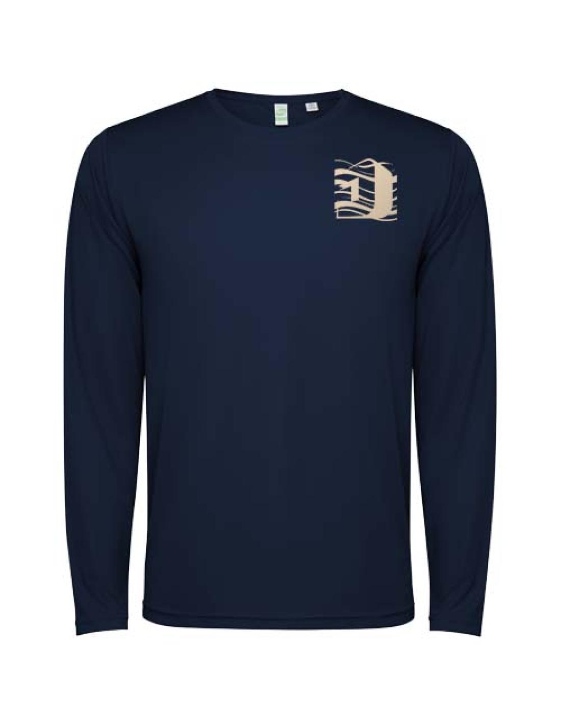 Camiseta técnica de manga larga unisex. Cuello con costuras a juego. Dobladillo trasero ligeramente más largo que el delantero. Costuras laterales desplazadas hacia delante.
