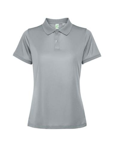 Polo entallado de manga corta para mujer. Costuras cubiertas reforzadas en el interior del cuello. Puños y cuello de canalé 1 × 1. Costuras laterales. Tapeta de 3 botones y aberturas laterales.