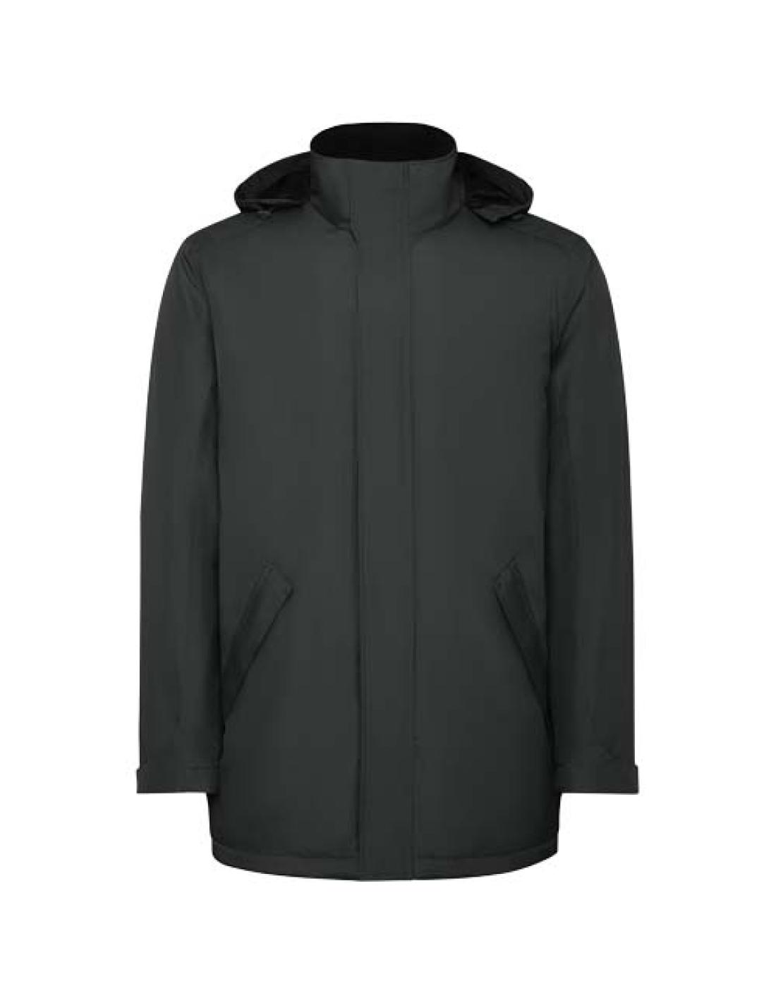Parka acolchada impermeable para hombre. Cuello alto con capucha plegable y extraíble, y cierre de velcro. Cremallera central a juego con solapa. Bolsillos laterales con cremallera y solapa fija. Bolsillo interior con cierre de velcro. Puños ajustables con presilla de velcro para cinturón. Acceso interior para refuerzos en la espalda y el lado izquierdo del pecho.