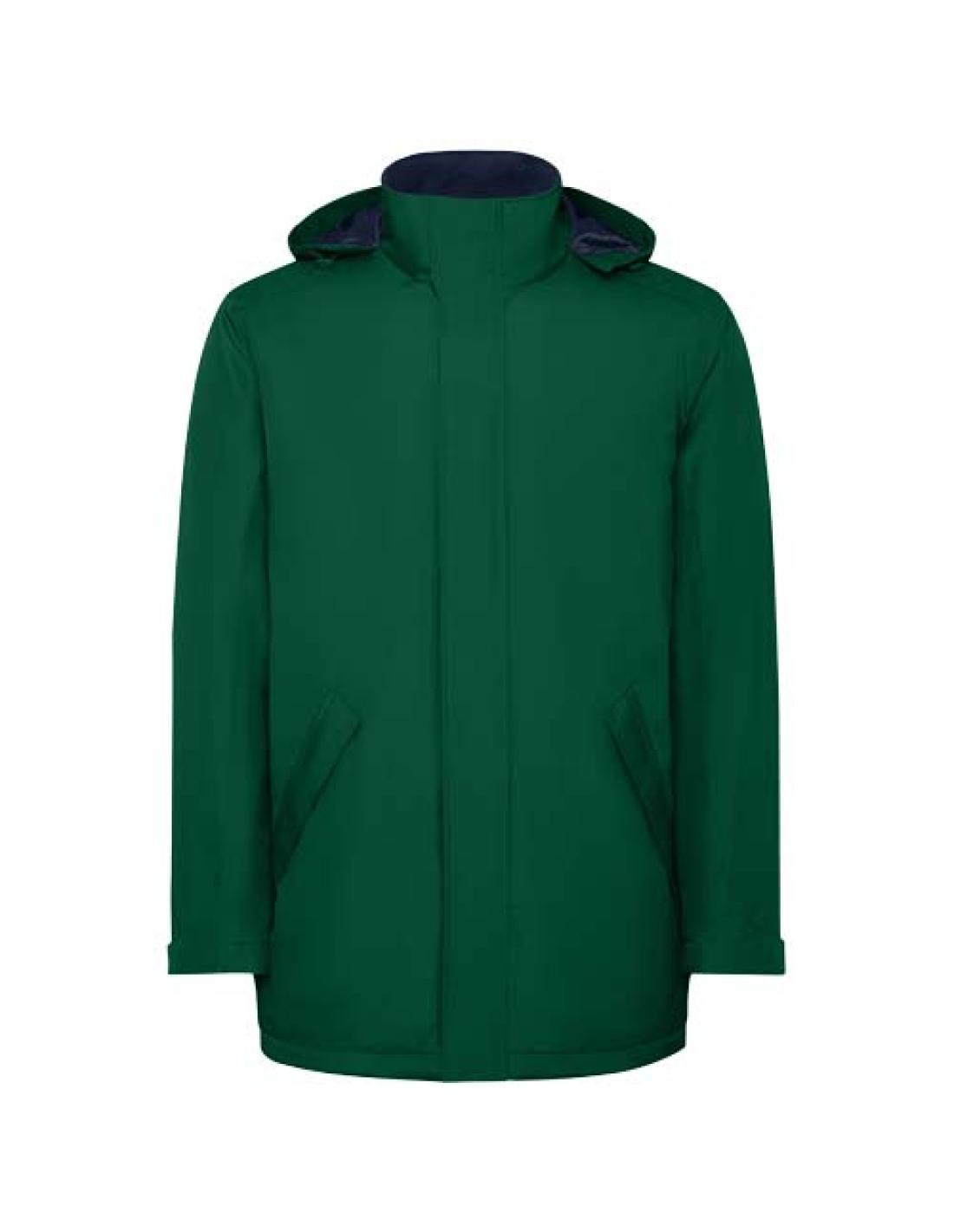 Parka acolchada impermeable para hombre. Cuello alto con capucha plegable y extraíble, y cierre de velcro. Cremallera central a juego con solapa. Bolsillos laterales con cremallera y solapa fija. Bolsillo interior con cierre de velcro. Puños ajustables con presilla de velcro para cinturón. Acceso interior para refuerzos en la espalda y el lado izquierdo del pecho.