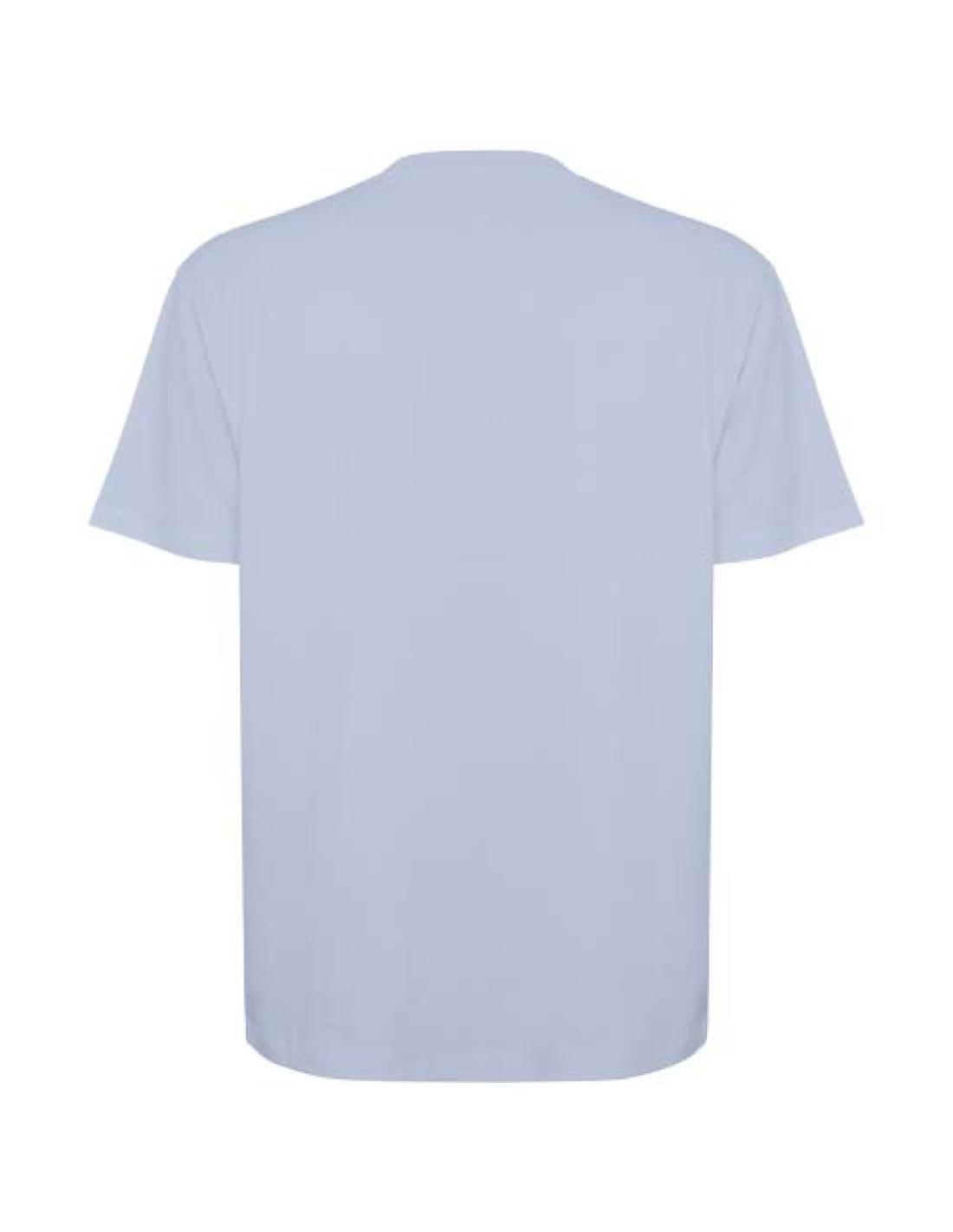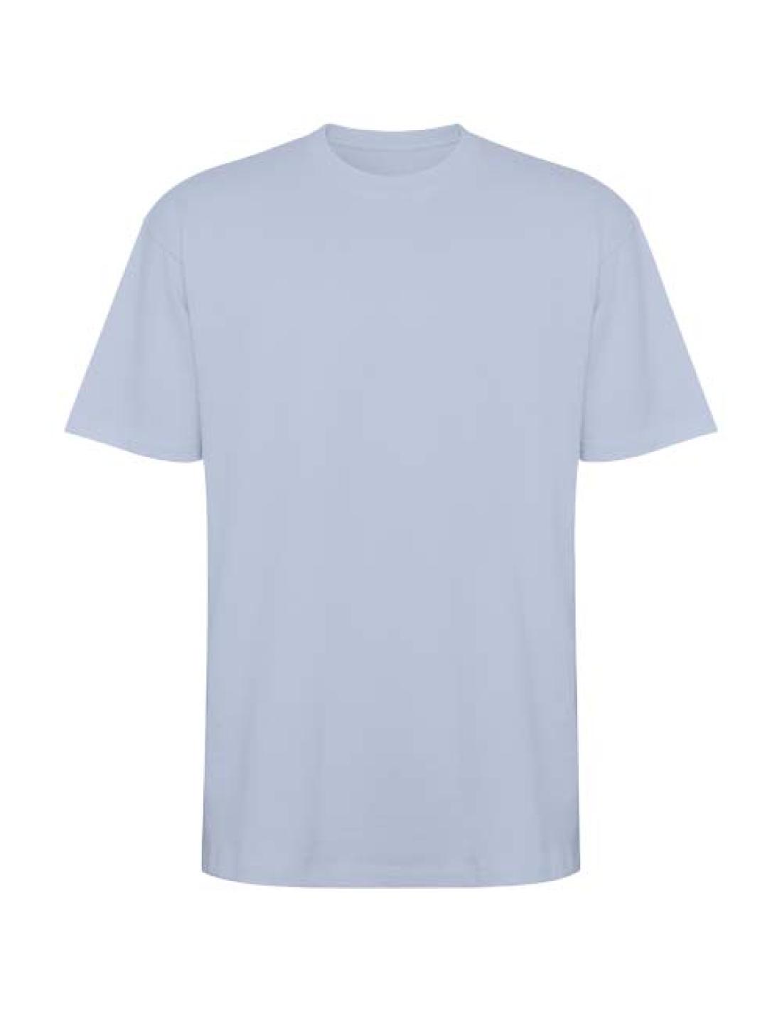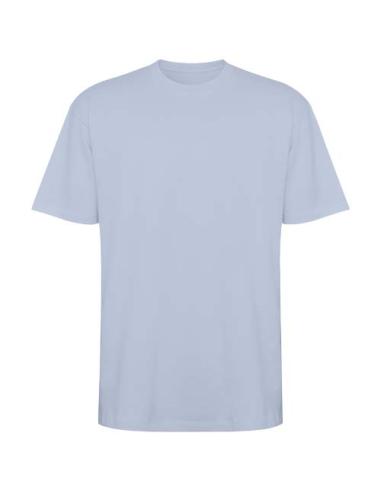 Camiseta holgada de manga corta. Cuello redondo ribeteado en canalé 2x1 con cubre costuras a juego. Costuras laterales. Doble costura ancha en las mangas y el dobladillo. Etiqueta extraíble.
