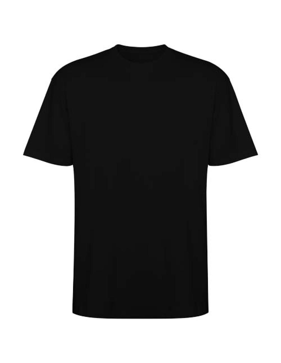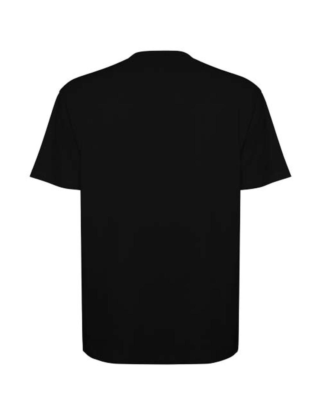 Camiseta holgada de manga corta. Cuello redondo ribeteado en canalé 2x1 con cubre costuras a juego. Costuras laterales. Doble costura ancha en las mangas y el dobladillo. Etiqueta extraíble.