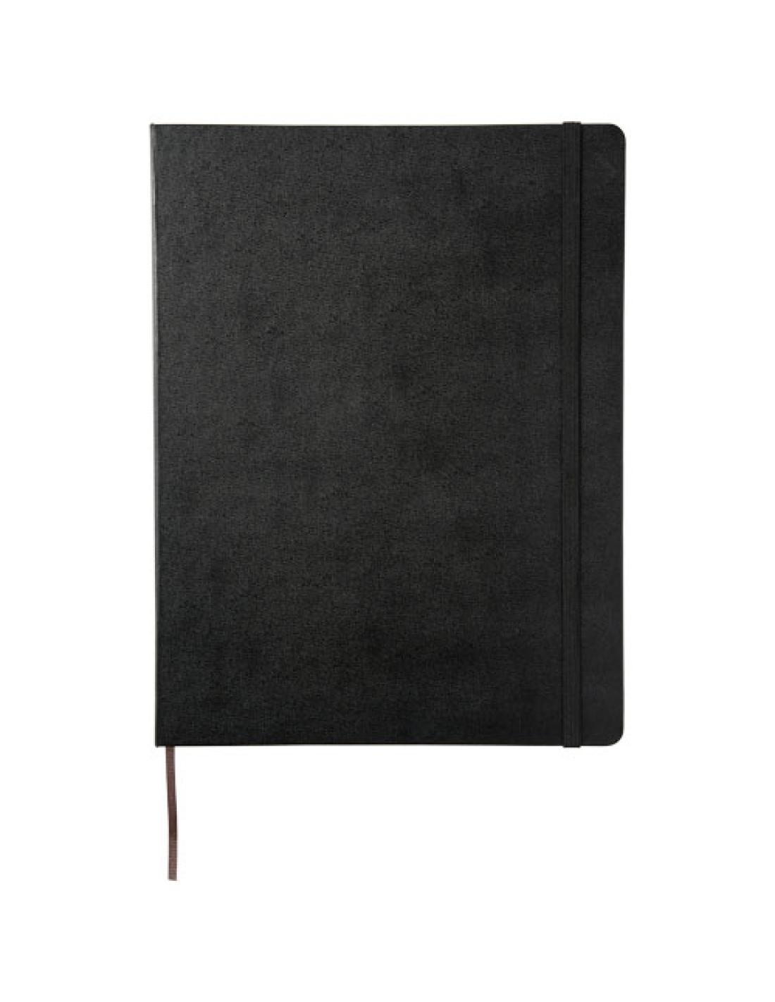 Nuestra libreta "Moleskine Classic" extragrande tiene las icónicas esquinas redondas y la tapa dura. Presenta cierre elástico y cinta marcapáginas. Bolsillo extensible en el interior de la contraportada. Contiene 192 páginas de papel rayado de color marfil.