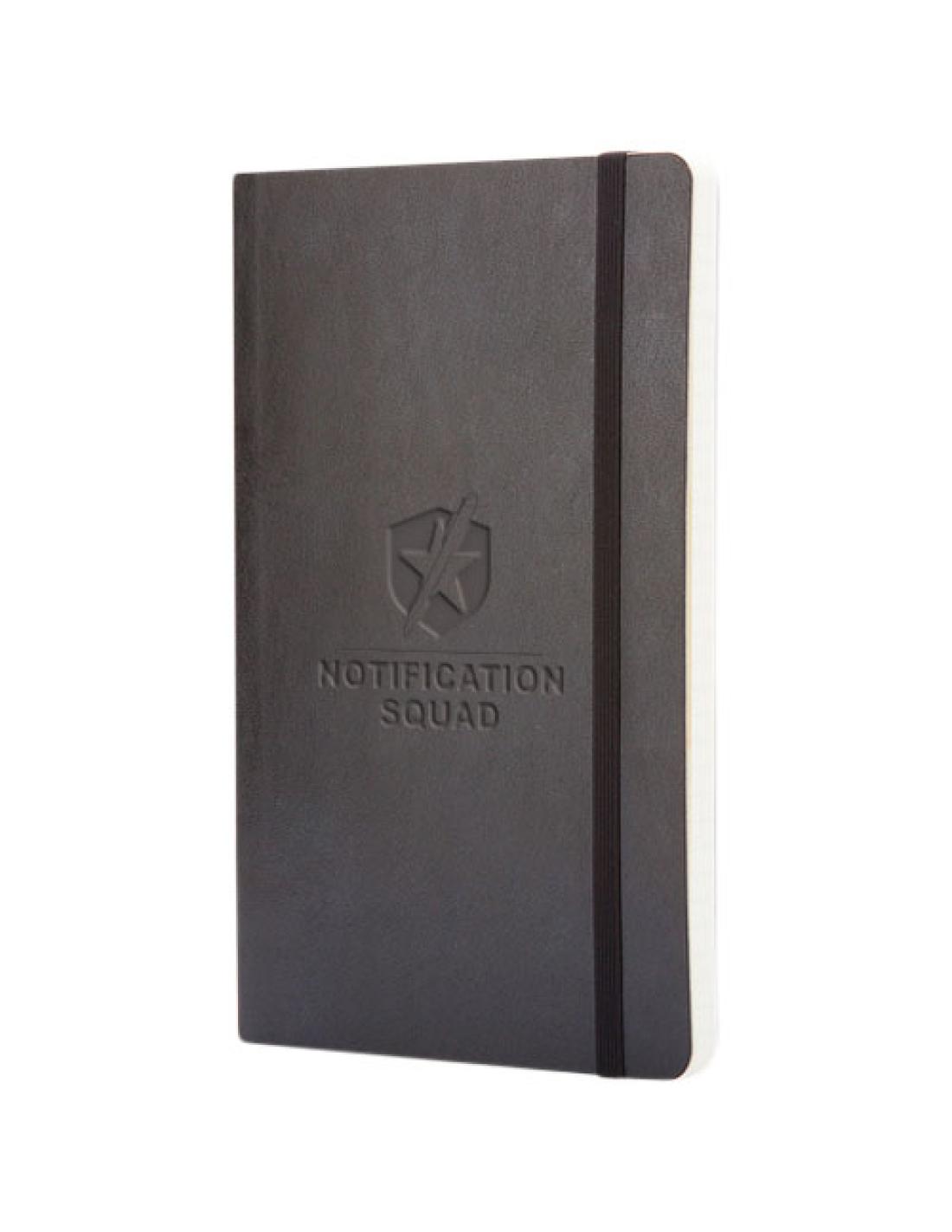 La libreta de tapa blanda "Moleskine Classic" grande (13 x 21 cm) está disponible en una amplia gama de elegantes colores intensos. La libreta cuenta con una tapa blanda de cartón con esquinas redondeadas, papel libre de ácido, un marcador y un cierre elástico. En la primera página hay una advertencia de «En caso de pérdida», con espacio para anotar una recompensa para quien lo encuentre. Unido a la cubierta posterior, hay un bolsillo interno extensible que incluye la historia de "Moleskine". El bolsillo se puede utilizar para papeles sueltos y notas. Contiene 192 páginas rayadas de color marfil.
