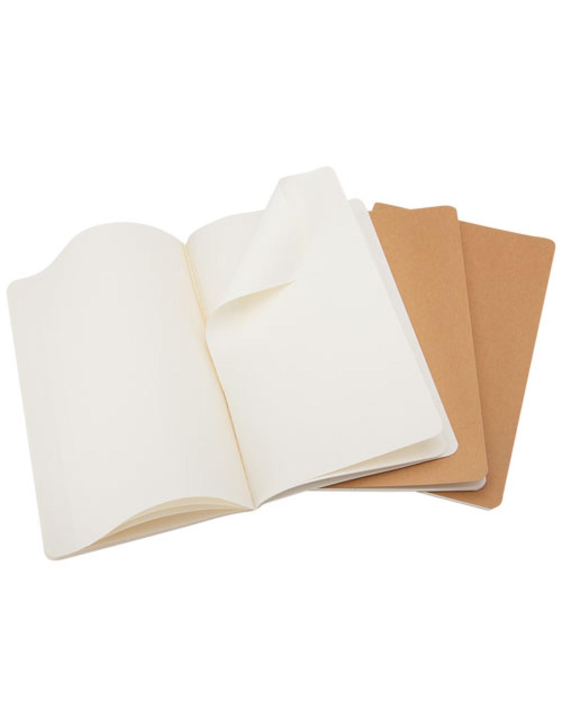 Cuenta con tapa de cartón con esquinas redondeadas. Costuras visibles en el lomo, con bolsillo interior para recoger notas sueltas. Contiene 80 páginas lisas de 70 g/m2 de color marfil. Las últimas 16 hojas son desmontables. La cantidad unitaria es de una pieza.