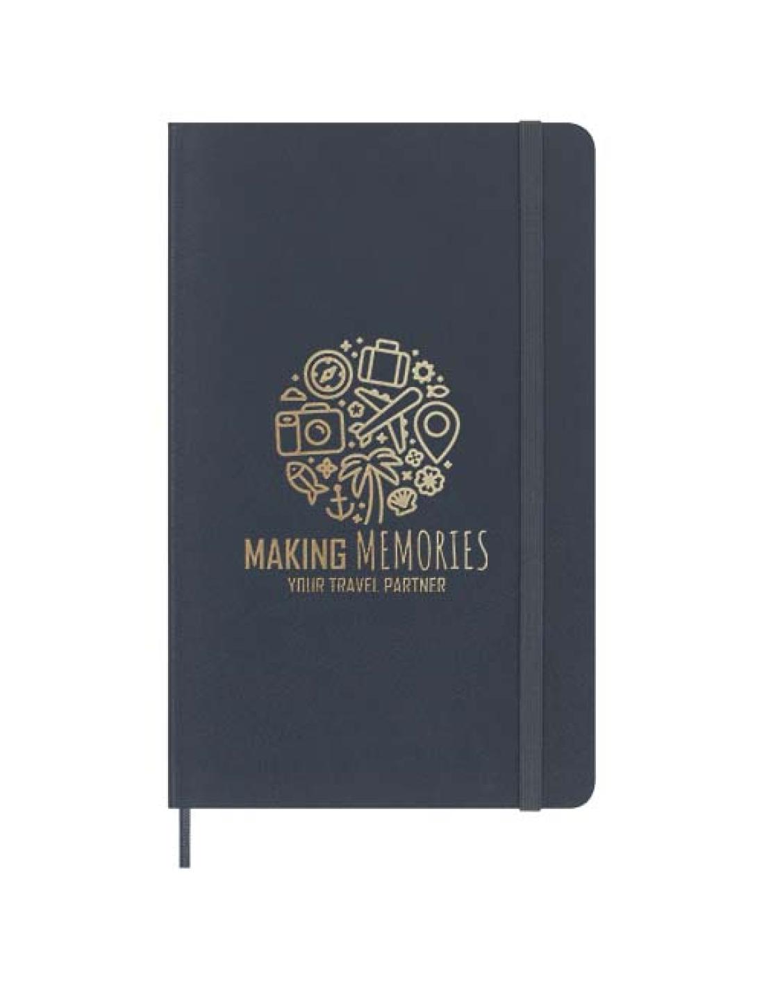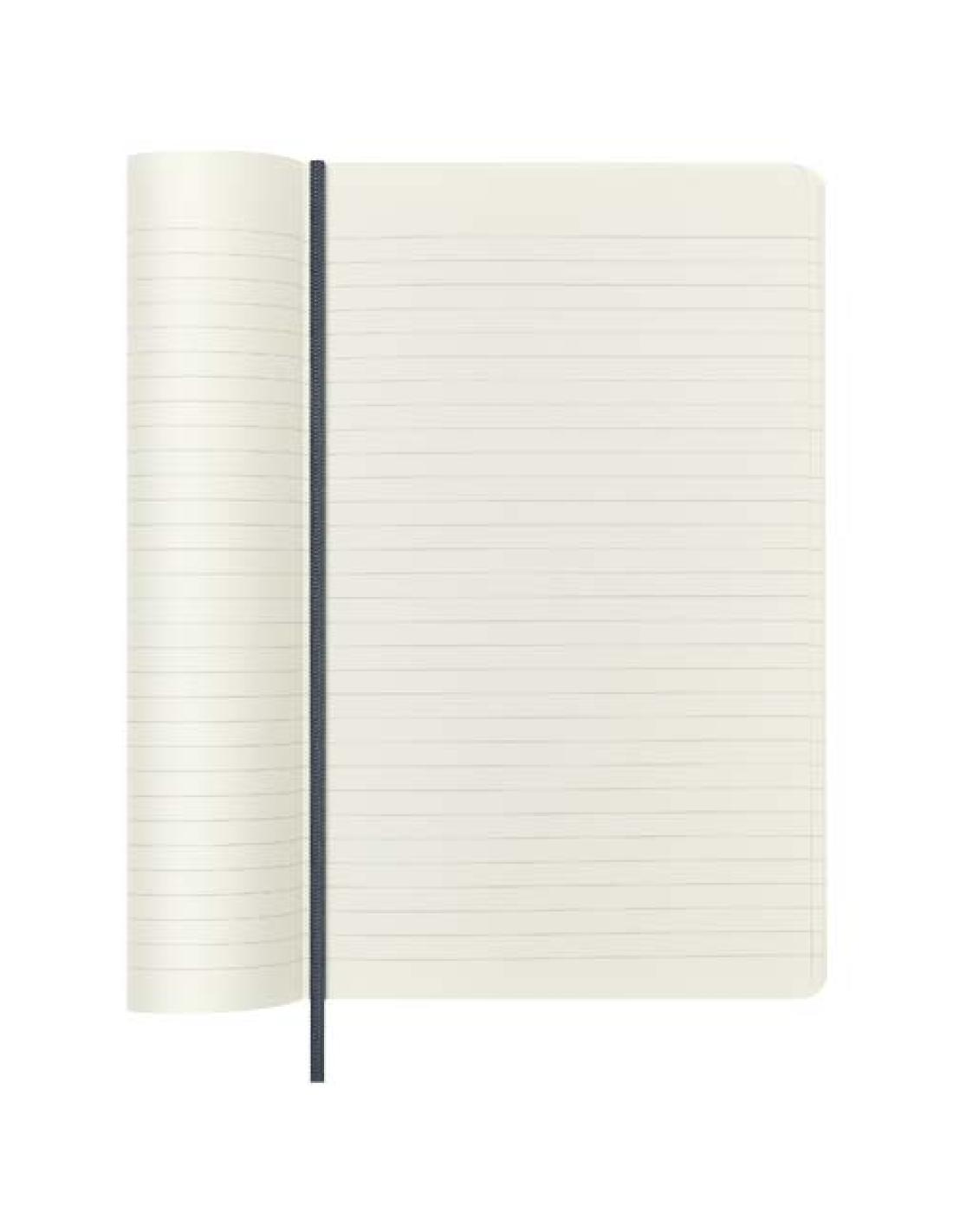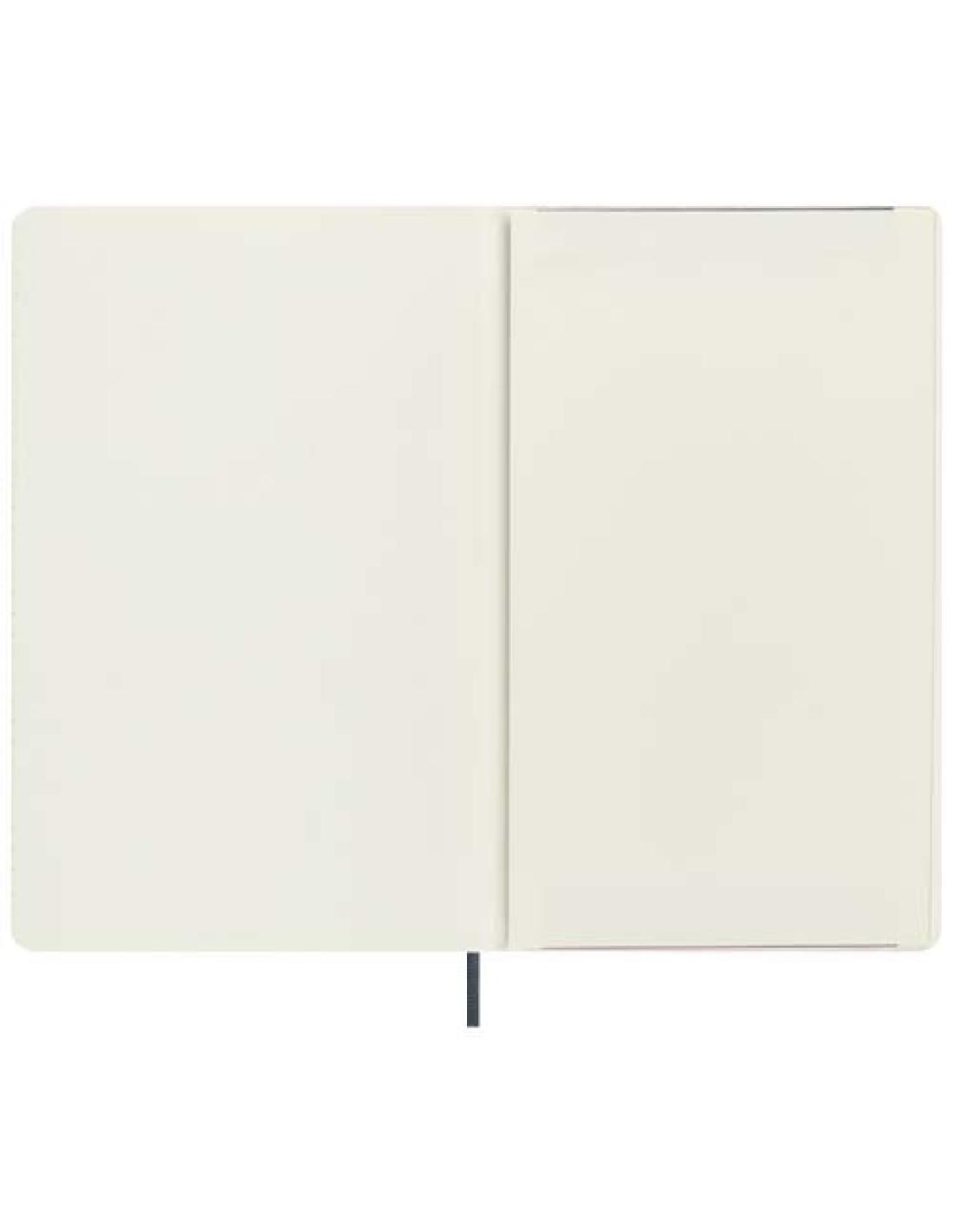 La libreta grande "Vegea Capri" tiene una tapa blanda vegana con efecto pitón y esquinas redondeadas con cierre elástico y marcapáginas de cinta a juego. La libreta contiene papel de color marfil libre de ácidos e incluye un bolsillo interior extensible que contiene la historia de "Moleskine". Se entrega en una caja de regalo.