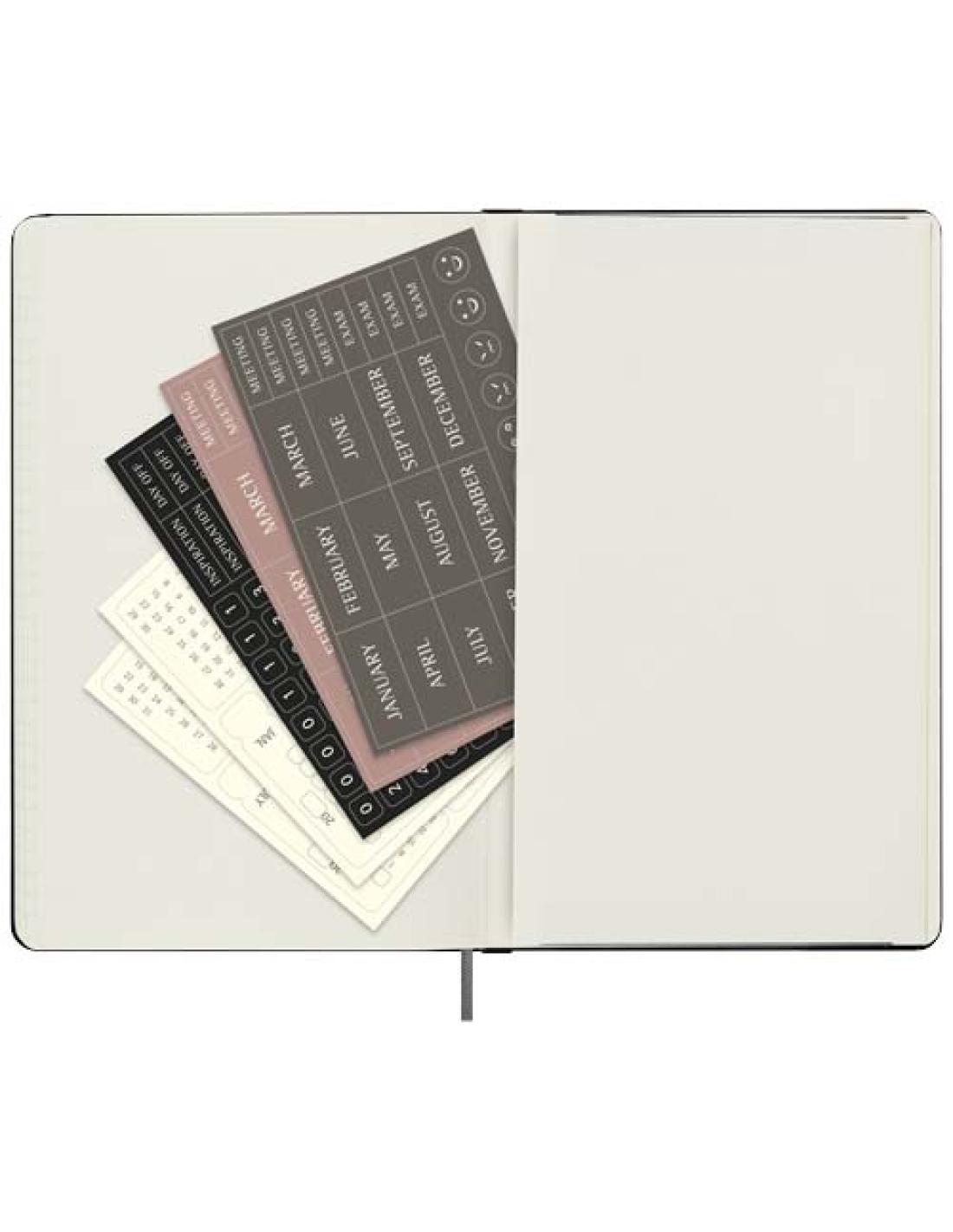 La agenda semanal con tapa dura sin fecha "Moleskine" puede comenzarse en cualquier momento del año. Es una opción excelente para quienes buscan una herramienta de planificación versátil y duradera. Los espacios para los meses, las semanas y los día están en blanco, por lo que ofrecen más flexibilidad y libertad que una agenda con fechas. Al rellenar personalmente las fechas, podrás saltarte los huecos y utilizar solo las páginas que necesites. Con 12 separadores de mes personalizables, cinco semanas sin fecha por mes, cierre elástico y marcapáginas de cinta a juego, papel libre de ácidos de 70 g/m2 de color marfil y bolsillo interior extensible.
