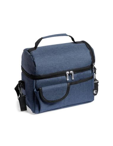 Nevera fabricada en resistente 600D RPET. Incluye 2 compartimentos independientes, con cierre de cremallera y tiradores metálicos. Interior isotermo en PEVA, con cinta bandolera ajustable y acolchado para hombro a juego. Bolsillo trasero de redecilla elástica y dos bolsillos frontales, uno de ellos con cierre de velcro. Etiqueta exterior con distintivo RPET, disponible en variada gama de colores. El material RPET se elabora a partir de plástico reciclado, para así fomentar la reutilización de residuos plásticos y ayudar a la sostenibilidad del planeta.