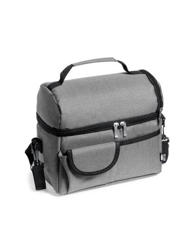 Nevera fabricada en resistente 600D RPET. Incluye 2 compartimentos independientes, con cierre de cremallera y tiradores metálicos. Interior isotermo en PEVA, con cinta bandolera ajustable y acolchado para hombro a juego. Bolsillo trasero de redecilla elástica y dos bolsillos frontales, uno de ellos con cierre de velcro. Etiqueta exterior con distintivo RPET, disponible en variada gama de colores. El material RPET se elabora a partir de plástico reciclado, para así fomentar la reutilización de residuos plásticos y ayudar a la sostenibilidad del planeta.