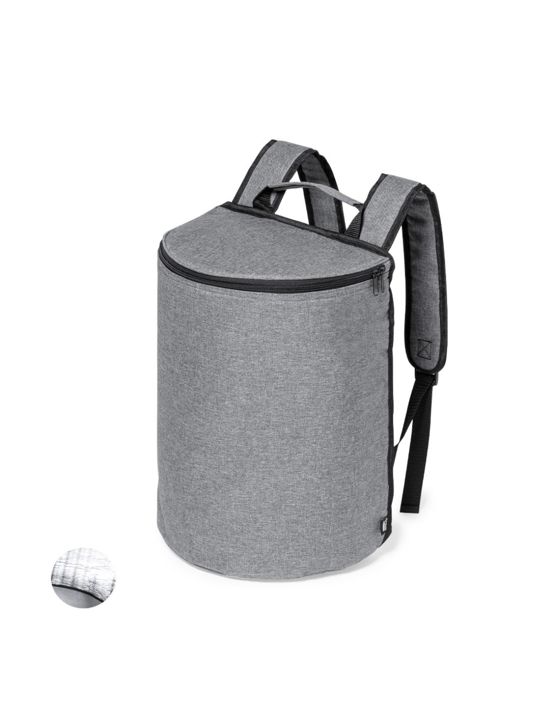 Mochila nevera fabricada en resistente 600D RPET. Acabado en color gris, con asa de transporte. Cintas para hombros acolchadas y ajustables. Compartimento principal con cierre de cremallera y tiradores metálicos. Interior isotermo en aluminio y etiqueta exterior con distintivo RPET.El material RPET se elabora a partir de plástico reciclado, para así fomentar la reutilización de residuos plásticos y ayudar a la sostenibilidad del planeta.