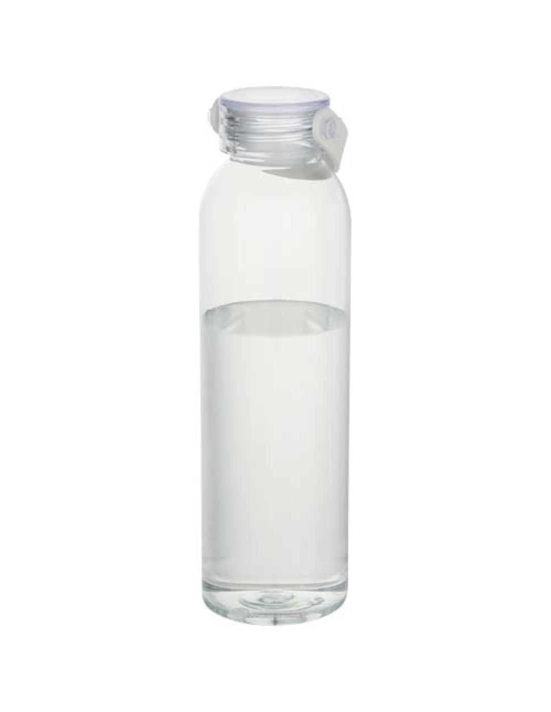 Botella de agua fabricada en RPET con certificado RCS y una práctica asa de silicona. Fabricada conforme al proceso de reciclado de PET aprobado por la EFSA. Capacidad: 630 ml.