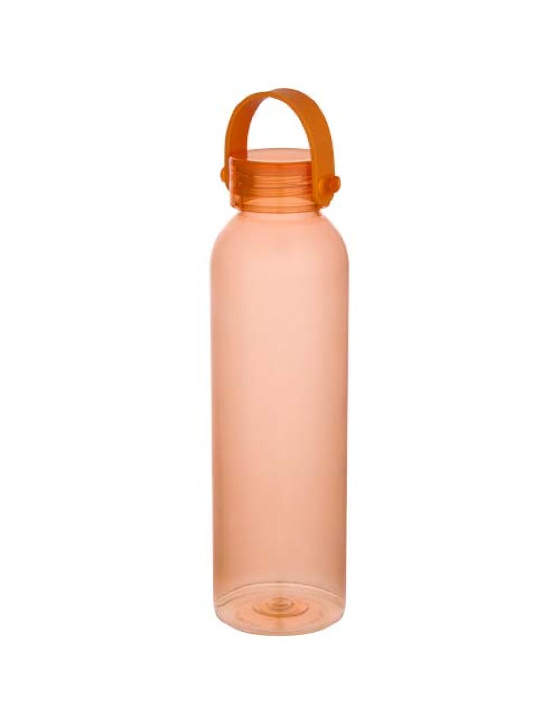 Botella de agua fabricada en RPET con certificado RCS y una práctica asa de silicona. Fabricada conforme al proceso de reciclado de PET aprobado por la EFSA. Capacidad: 630 ml.