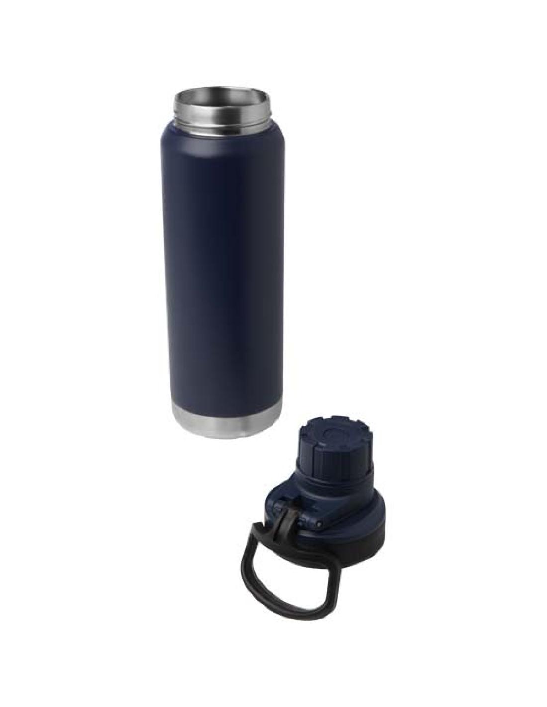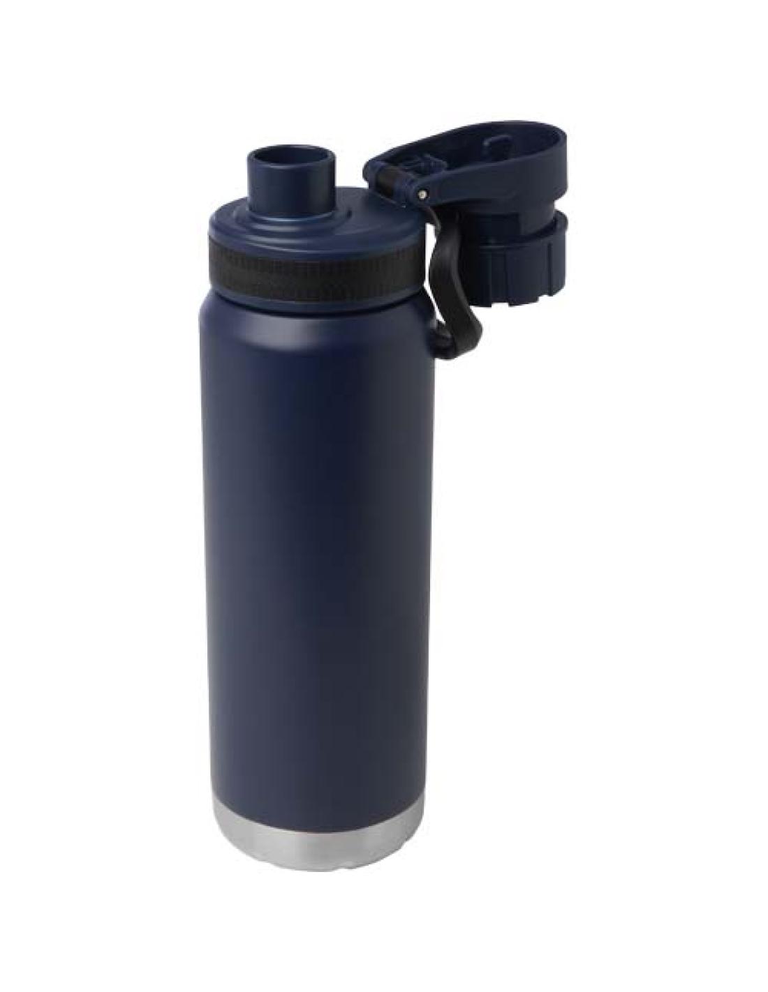 Botella con aislamiento al vacío de cobre y doble pared de acero inoxidable con certificado RCS y tapa de rosca a prueba de fugas. Presenta una amplia abertura para facilitar el llenado y la limpieza, y una cómoda asa de transporte integrada en el tapón. Adecuada para refrescos. Revestimiento exterior duradero. Se presenta en una caja de regalo de cartón reciclado. Capacidad: 700 ml.
