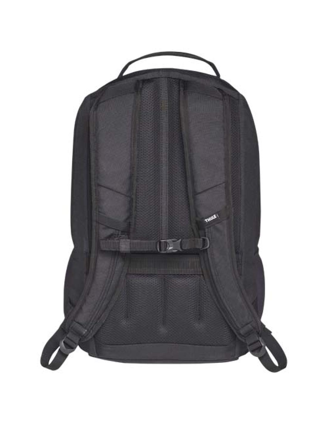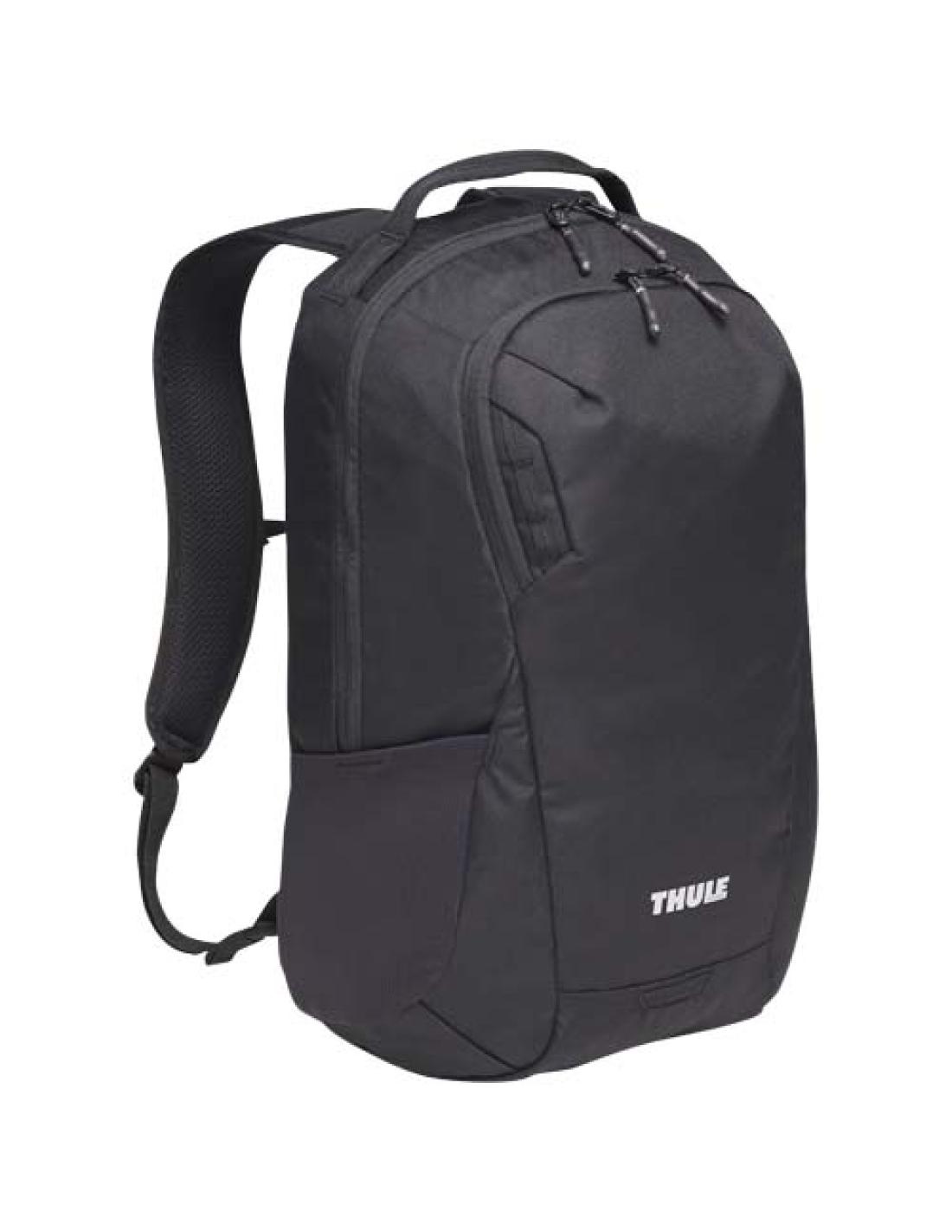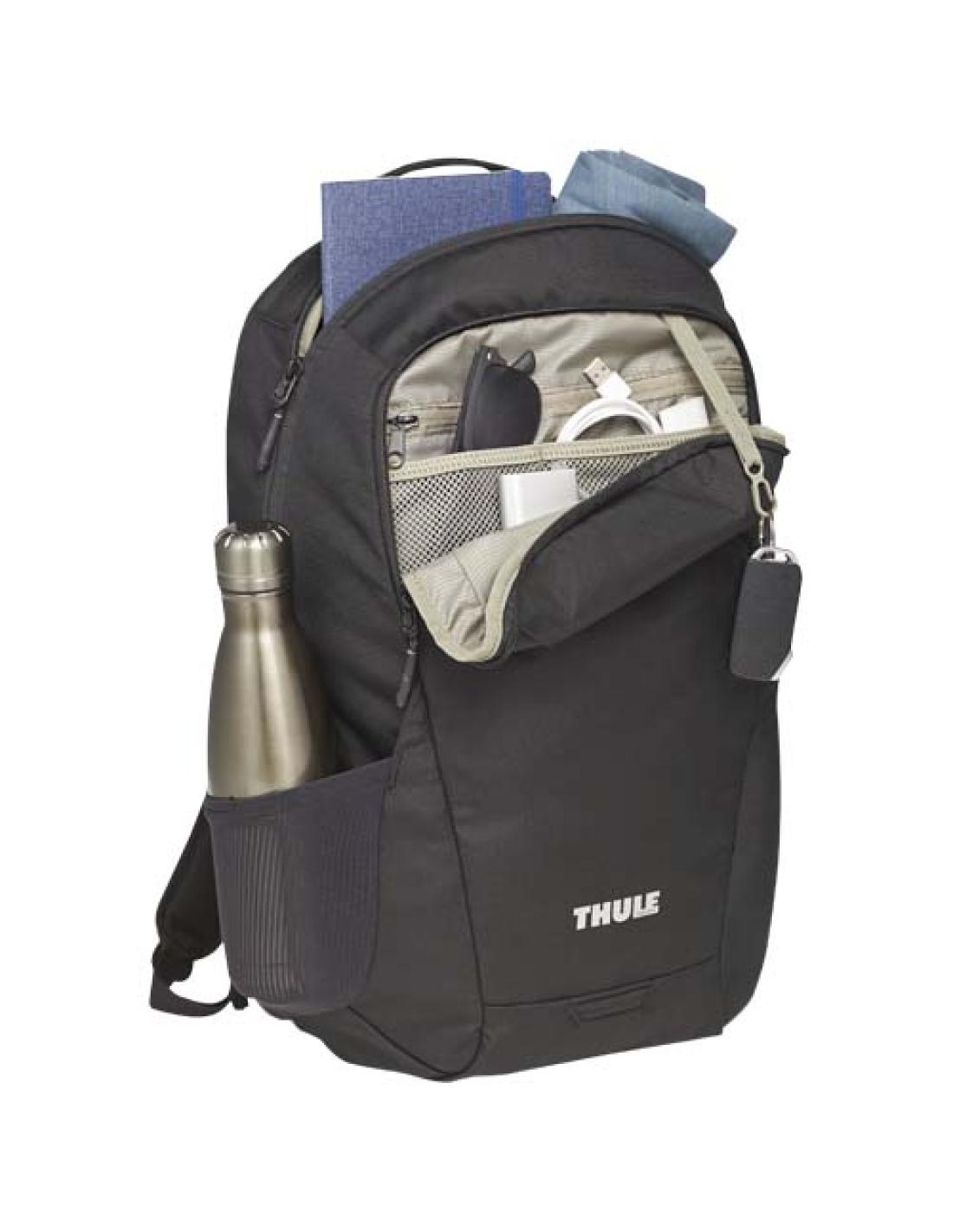La mochila para portátil de 16" "Thule Lumion" está fabricada en poliéster reciclado y cuenta con un bolsillo frontal con cremallera para organización, así como un compartimento más grande con cremallera y funda para portátil acolchada de 16". El asa de transporte superior permite cogerlo y llevárselo, mientras que el panel acolchado del respaldo proporciona apoyo lumbar inferior. Esta mochila cuenta con un bolsillo lateral para botella de agua y correas con cadena.