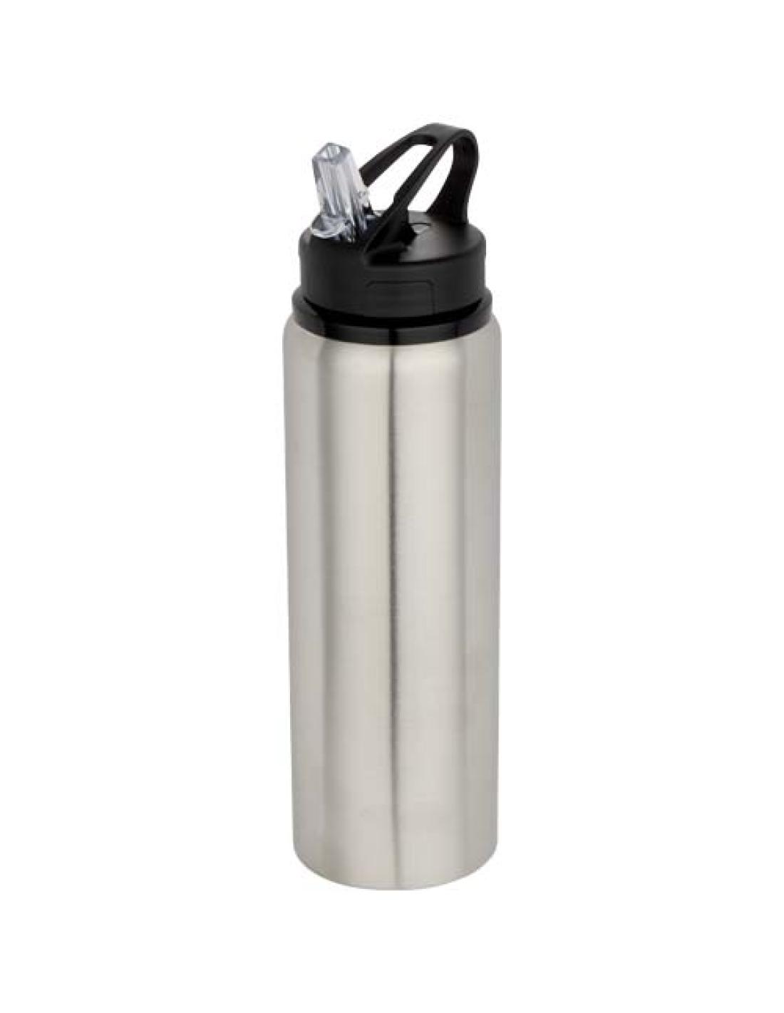 La botella de agua de pared simple "Fitz" está fabricada con acero inoxidable reciclado con certificado RCS, un material ligero y duradero. Tiene tapón de rosca, boquilla abatible y un asa para facilitar su transporte. Capacidad: 800 ml.