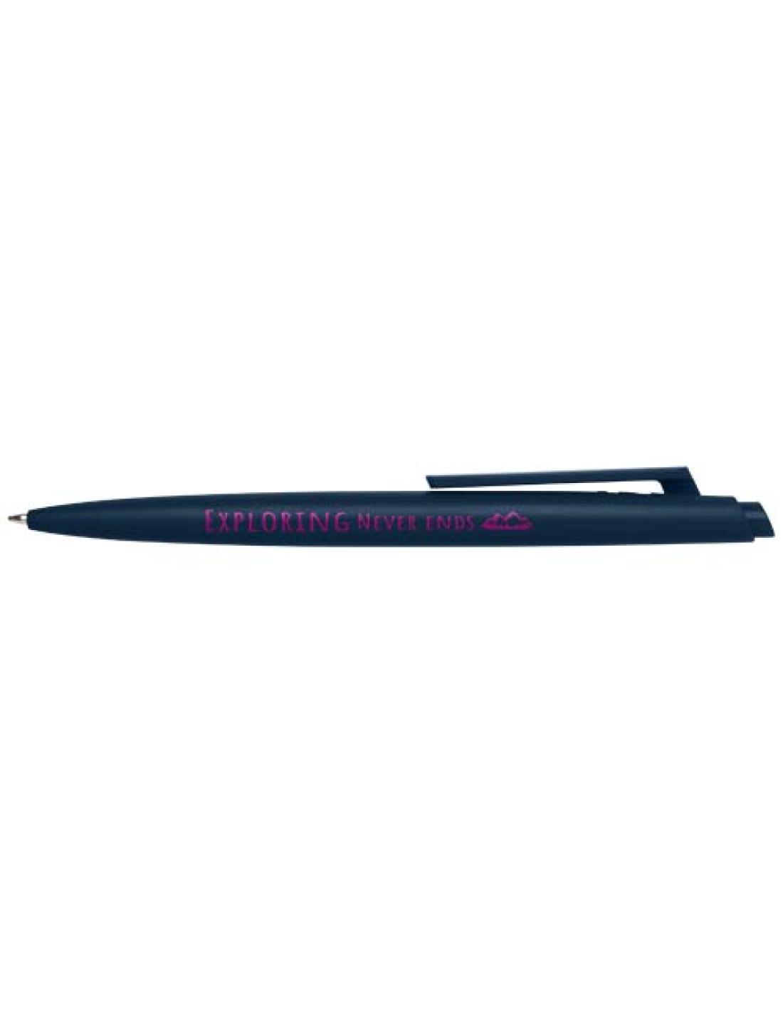 El bolígrafo "Ipe" presenta un diseño minimalista compuesto por solo cuatro piezas: cuerpo, clip, muelle y recarga, lo que lo hace ligero y fácil de usar. Está fabricado en plástico reciclado con certificado RCS, lo que reduce la necesidad de materiales vírgenes. Color de la tinta: Azul. Longitud de escritura: 800 metros. Tamaño del plumín: 1,0 mm.