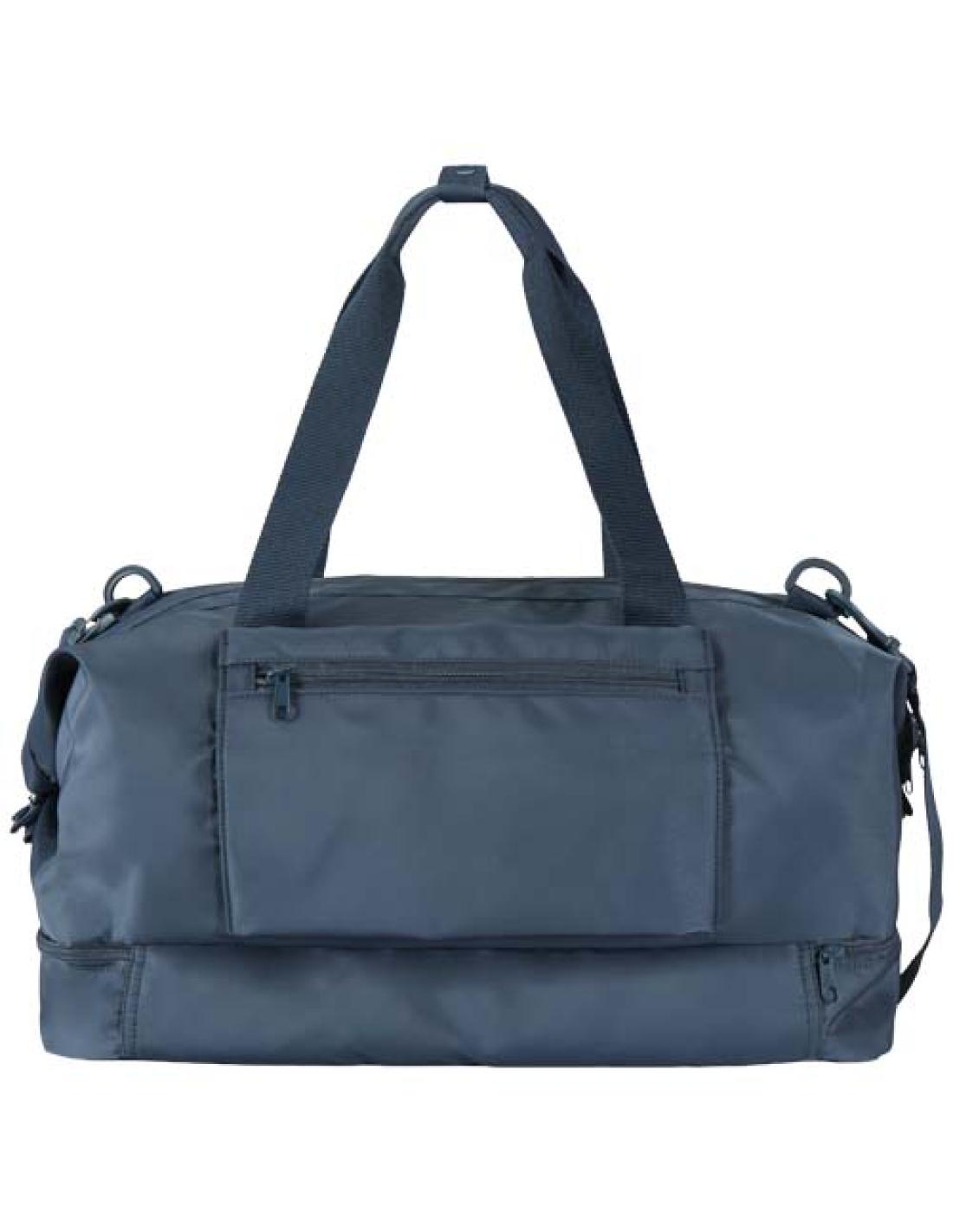 La bolsa de lona "Trip Aware™" reciclada de viaje es versátil y espaciosa, ideal para escapadas cortas y para llevar todos tus imprescindibles con facilidad. Fabricada en resistente poliéster de sarga 290D con un suave forro de punto y forrada con RPET 210D/poliuretano, está diseñada para un uso práctico y cómodo. El compartimento principal incluye un gran bolsillo con cremallera con espacio para el pasaporte, bolígrafos y una cinta para las llaves, además de dos bolsillos interiores y dos portabotellas. Un compartimento inferior independiente se abre en forma de almeja, perfecto para guardar el calzado o separar el equipo. Todas las bolsas tienen su propio rastreador "Aware™". Esta innovadora función permite a los usuarios rastrear el origen y el recorrido de su artículo a través de un código QR, lo...