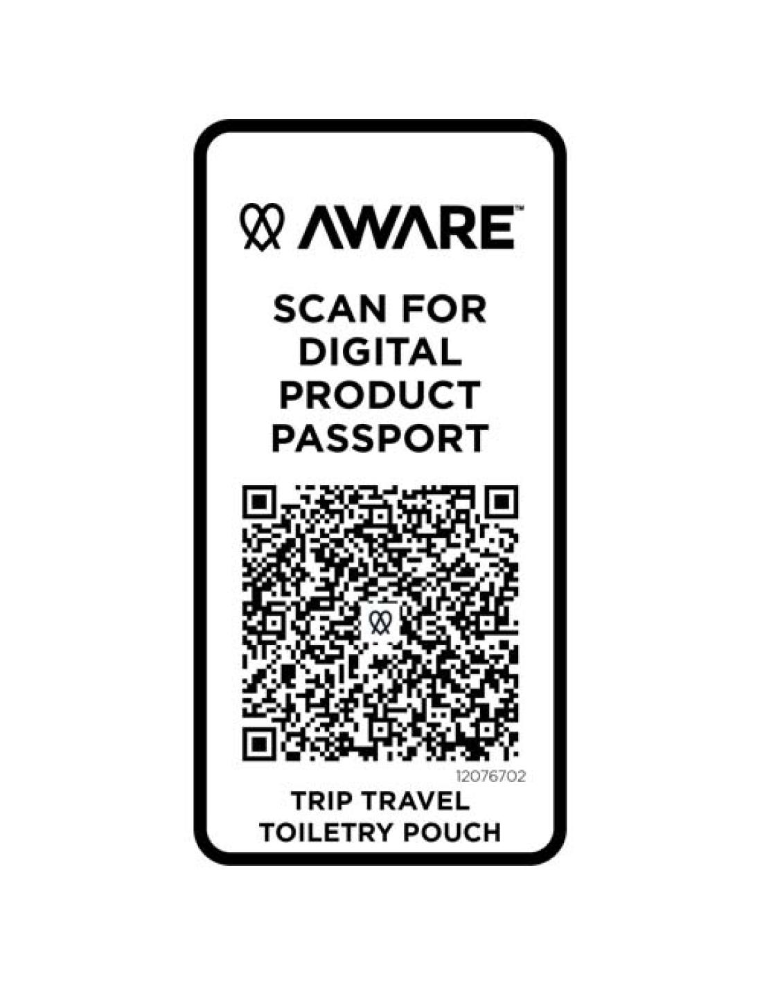 El neceser de viaje "Trip Aware™" reciclado es una solución compacta y sencilla para transportar los artículos de uso diario. Fabricado en poliéster de sarga 290D con forro de punto y forro de RPET 210D/poliuretano, presenta un gran diseño minimalista. El compartimento principal ofrece espacio para artículos de aseo u objetos pequeños, por lo que es ideal para viajes cortos u organizarte cuando sales. Todas las bolsas tienen su propio rastreador "Aware™". Esta innovadora función permite a los usuarios rastrear el origen y el recorrido de su artículo a través de un código QR, lo que aumenta la transparencia de la cadena de suministro y fomenta una mayor conexión entre el producto y su proceso de producción. Capacidad: 2 litros.